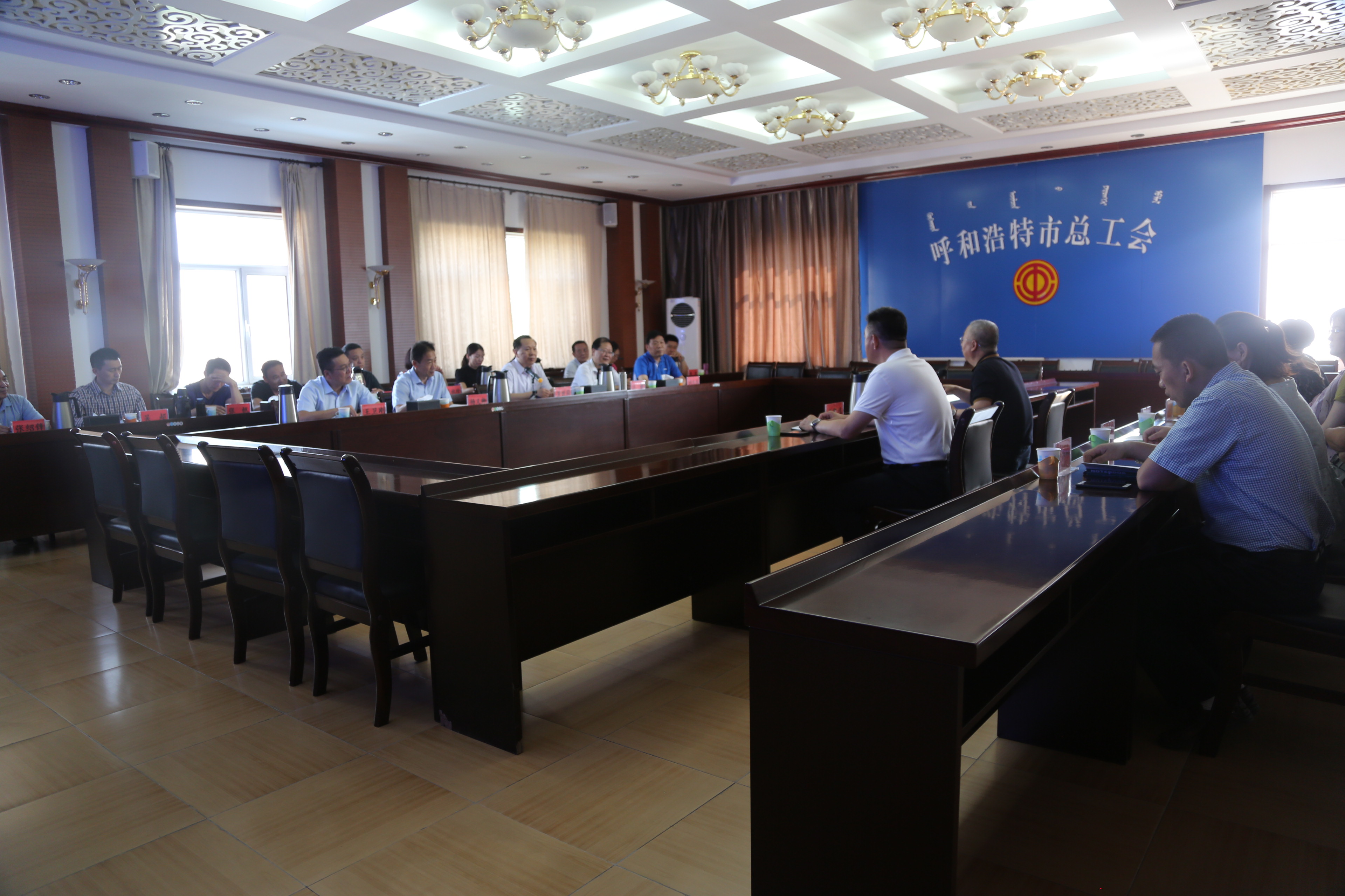 6月28日,许昌市总工会党组书记、常务副主席罗世岗等一行17人来呼学习考察工会相关工作。呼市总工会党组书记、副主席汪俊亭,兼职副主席马黎鸣陪同考察。