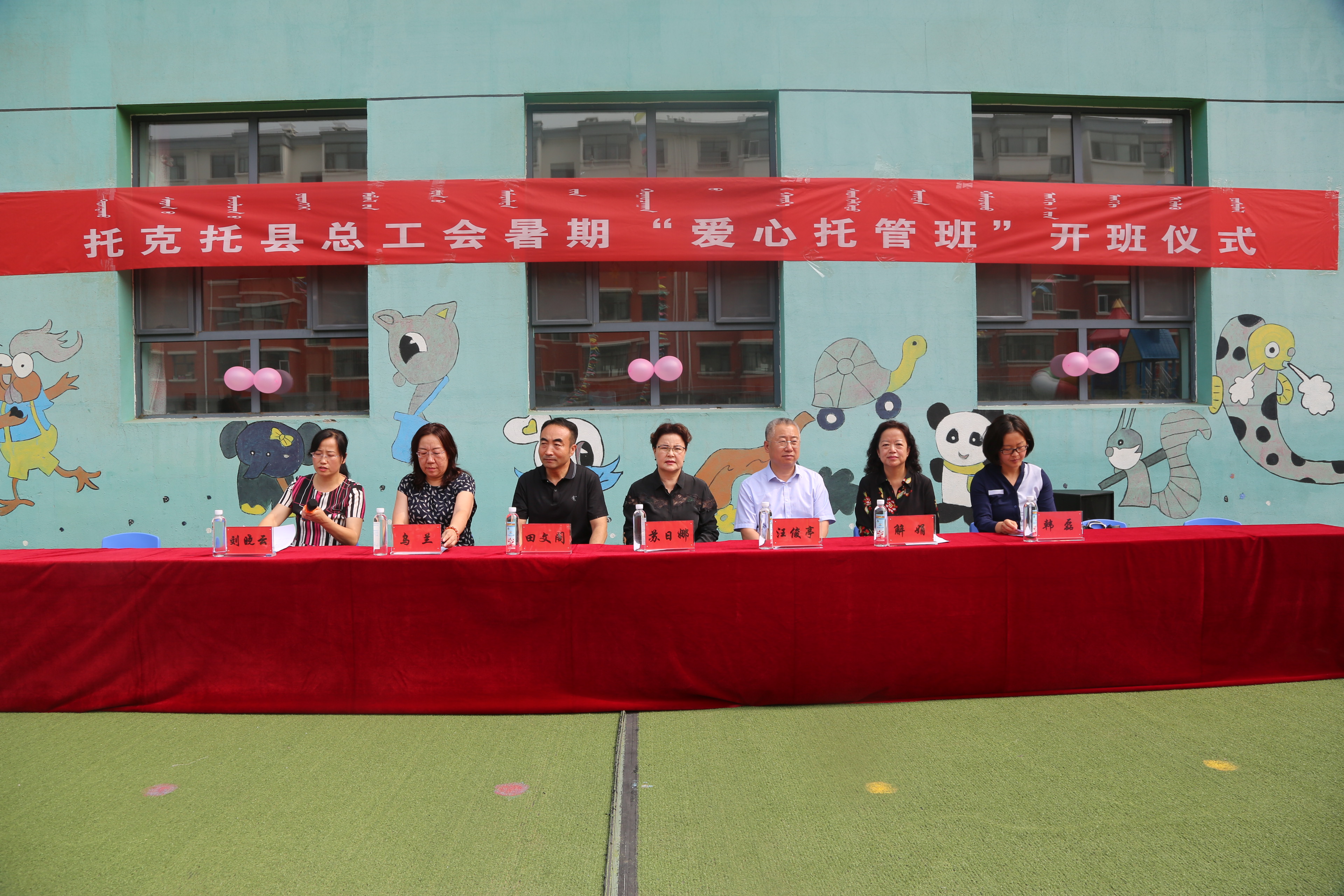 7月18日上午,托克托县总工会暑期“爱心托管班”开班仪式在托县举行。自治区总工会副主席苏日娜,自治区总工会女工部部长解娟,呼市总工会党组书记、副主席汪俊亭等出席仪式。