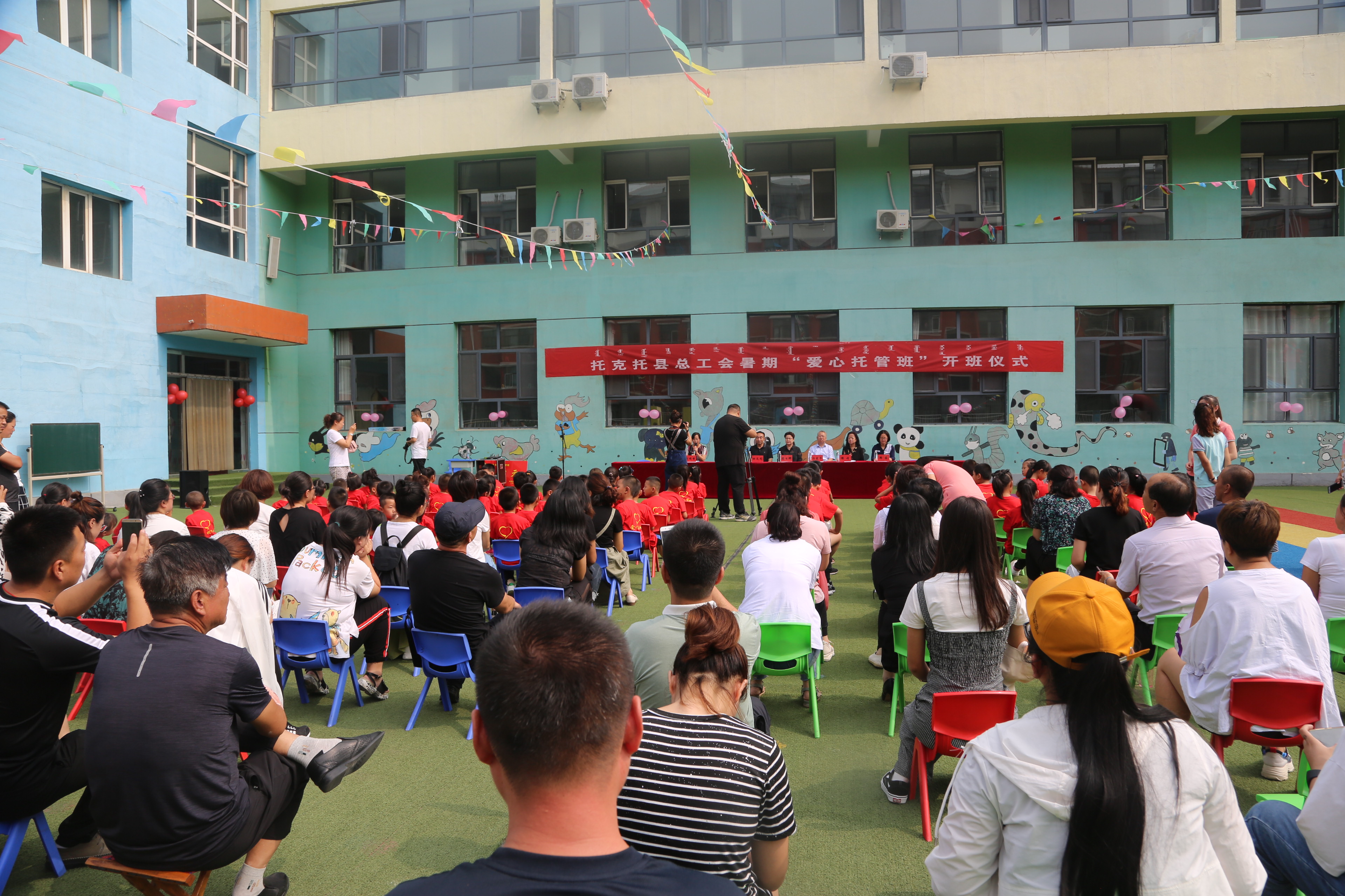 “爱心托管班”是为帮职工解决暑假子女照看问题,由托县总工会出资创办的公益性托管机构,目前已经有110多名学龄前和小学生报名参加,为全县上百个职工家庭解决了后顾之忧。在现场发言的学生家长表示,把孩子送到托管班里,跟老师和其他小朋友们每天一起学习玩耍、健康成长,让他们这样的双职工父母感到非常放心。