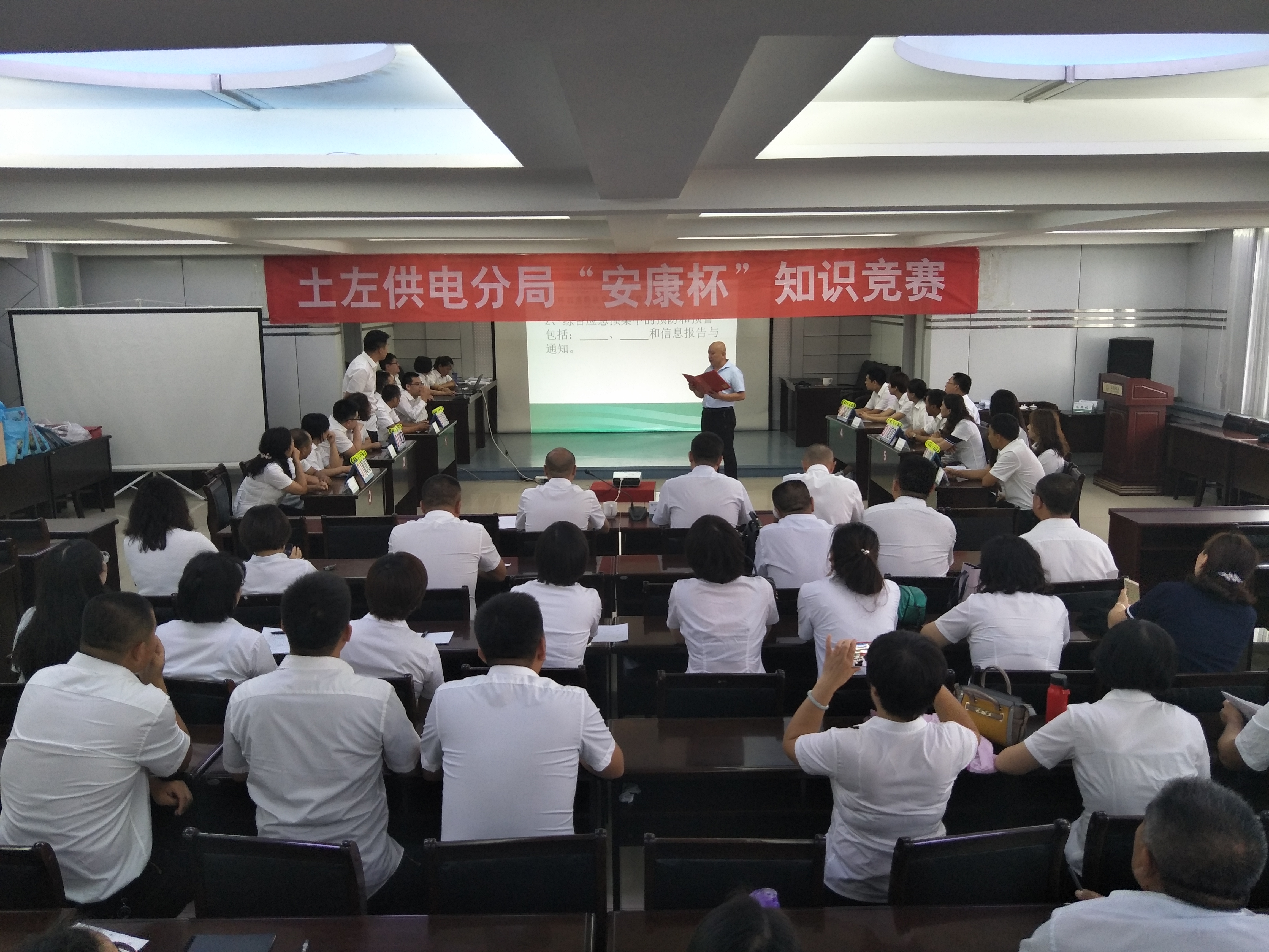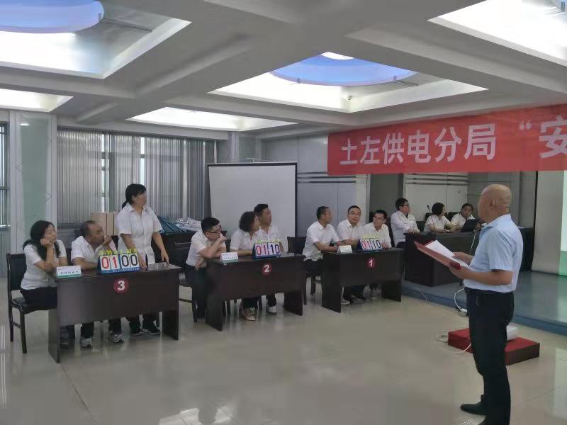 为了全面贯彻落实呼供工会“安康杯”安全知识竞赛活动通知要求,扎实推进以“落实全员安全责任,促进企业安全发展”为主题的“安康杯”竞赛活动。2019年7月19日,土左供电分局工会牵头,安全监督室组织开展了“安康杯”知识竞赛活动。