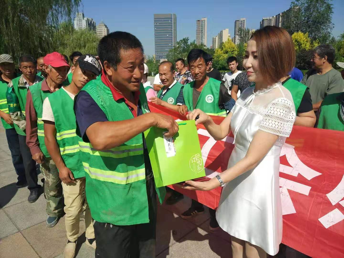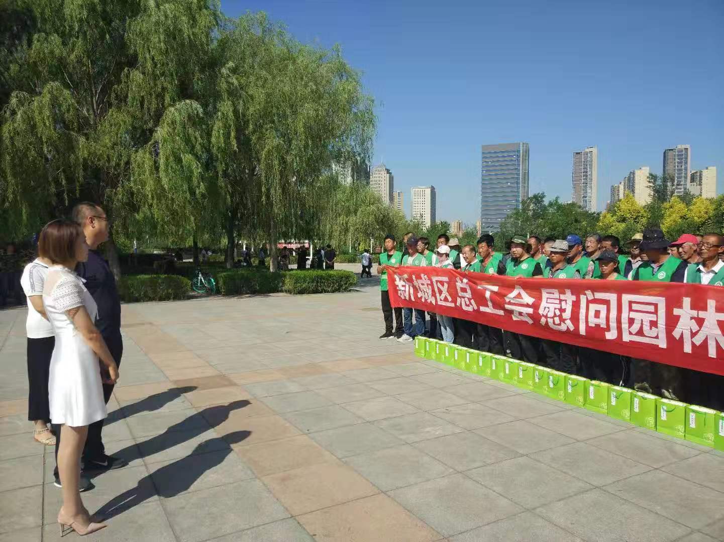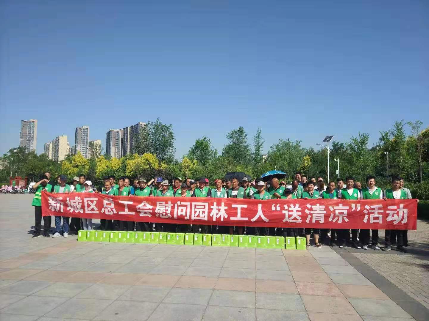7月26日,新城区总工会前往新城区园林局慰问一线园林工人,为他们送上防暑用品,叮嘱一线园林职工在高温天气要注意安全、注意防暑降温,并对他们辛勤的劳动付出表示感谢。