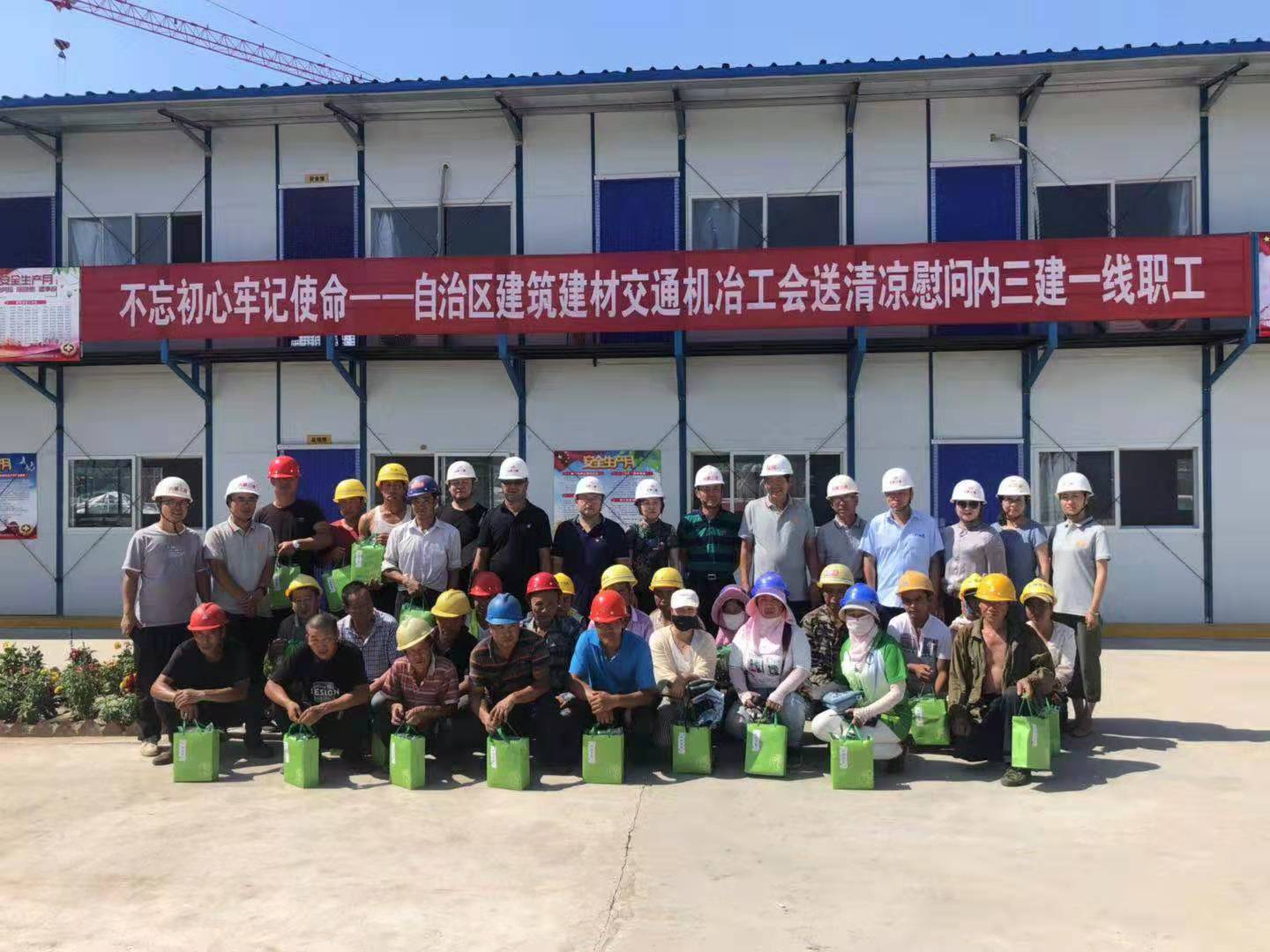 “不忘初心、牢记使命”——自治区建筑建材交通机冶工会带着党和政府的关怀,来到内三建进行了”送清凉“慰问活动。7月26日,自治区建筑建材交通机冶工会主席陈威一行,来到内三建承揽的呼和浩特公安局拘留所、戒毒所、看守所(一期、二期),看望并慰问了一线工人,为他们送去了绿茶、绿豆、白糖等防暑慰问品。送清凉活动不仅送去了组织的清凉和关怀,更是极大的鼓舞了一线工人的干劲,促进了公司的安全生产并提供了可靠的保障。