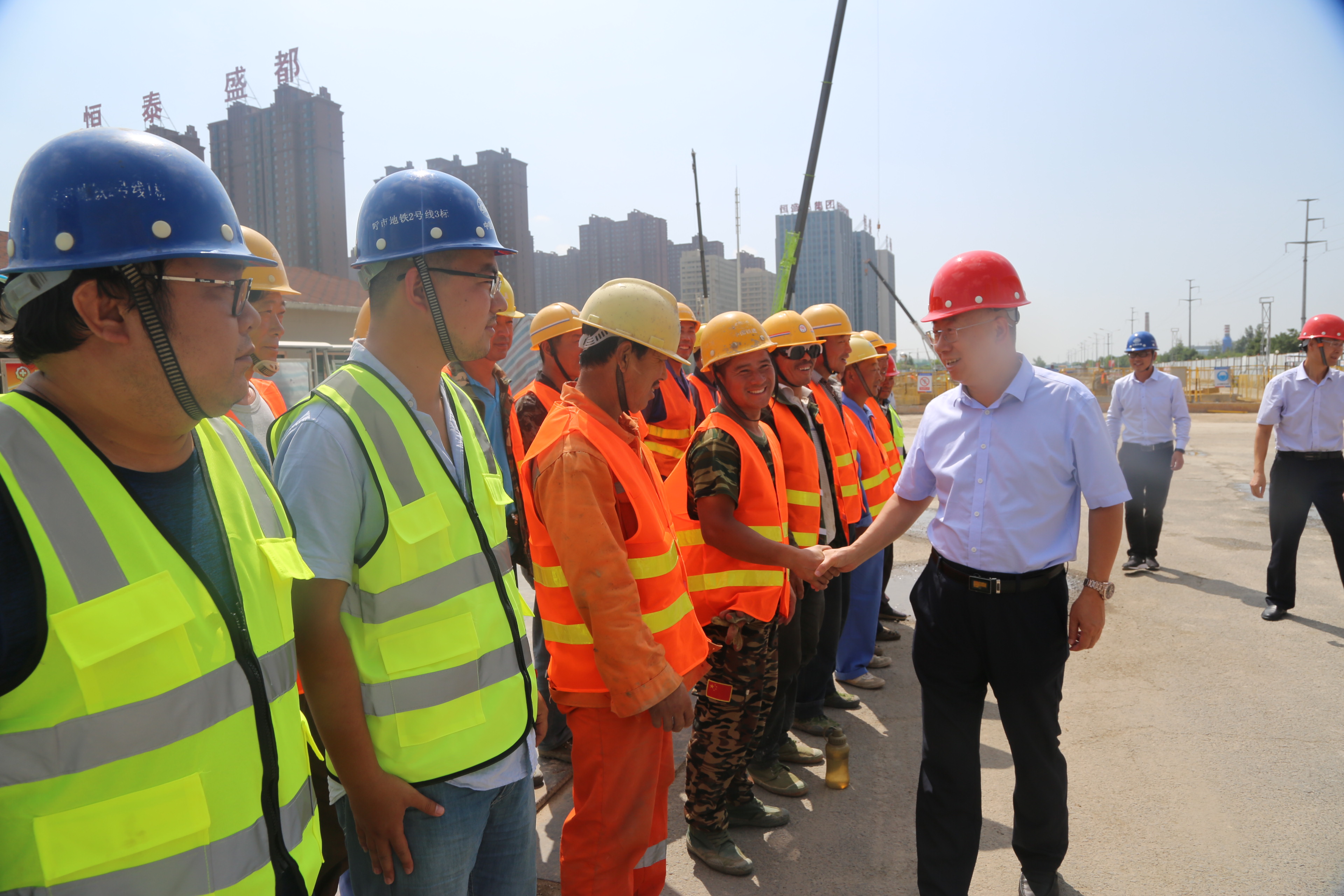 慰问组先后来到呼市地铁2号线外电源线路标项目部、3标项目部,巴彦路,呼市地铁1号线什兰岱村站,呼市轨道交通建设公司地铁控制中心,中蒙博览会永久会场及内蒙古革命历史博物馆建设工地进行了慰问。