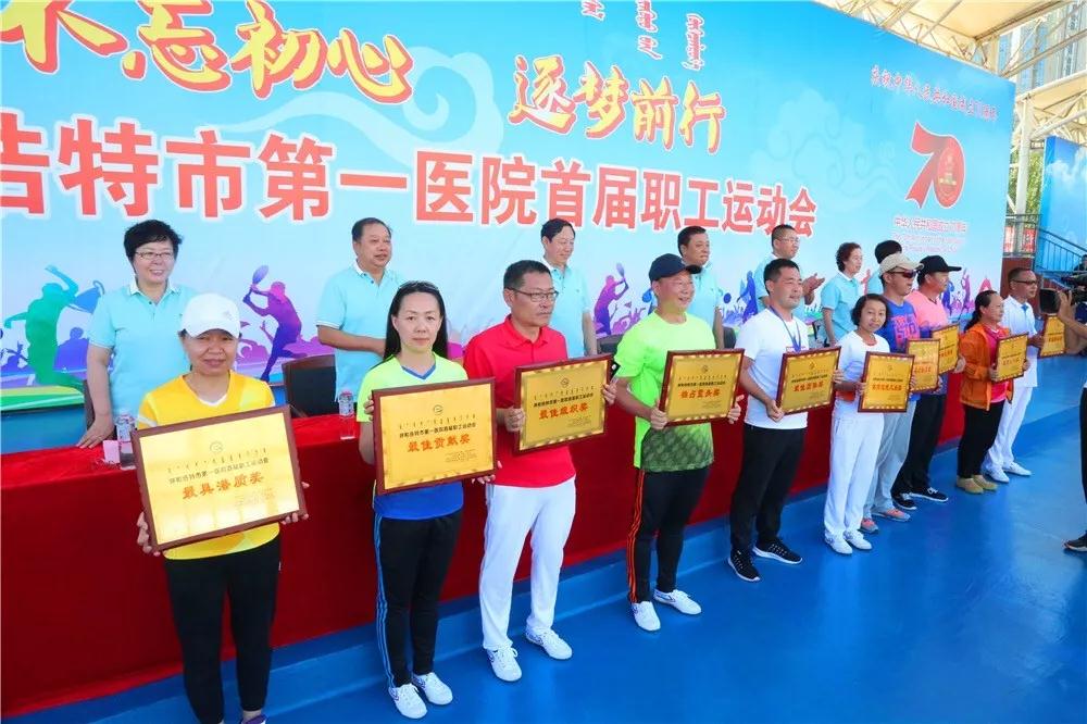 8月16日下午,为丰富医院职工业余生活,增强职工身体素质,促进医院文化建设,呼和浩特市第一医院首届职工运动会在内蒙古大学(南校区)隆重举行。本届运动会以“不忘初心 逐梦前行”为主题,1000余名干部职工欢聚在美丽的内蒙古大学(南校区)体育场,将运动赛场融汇成欢乐的海洋。