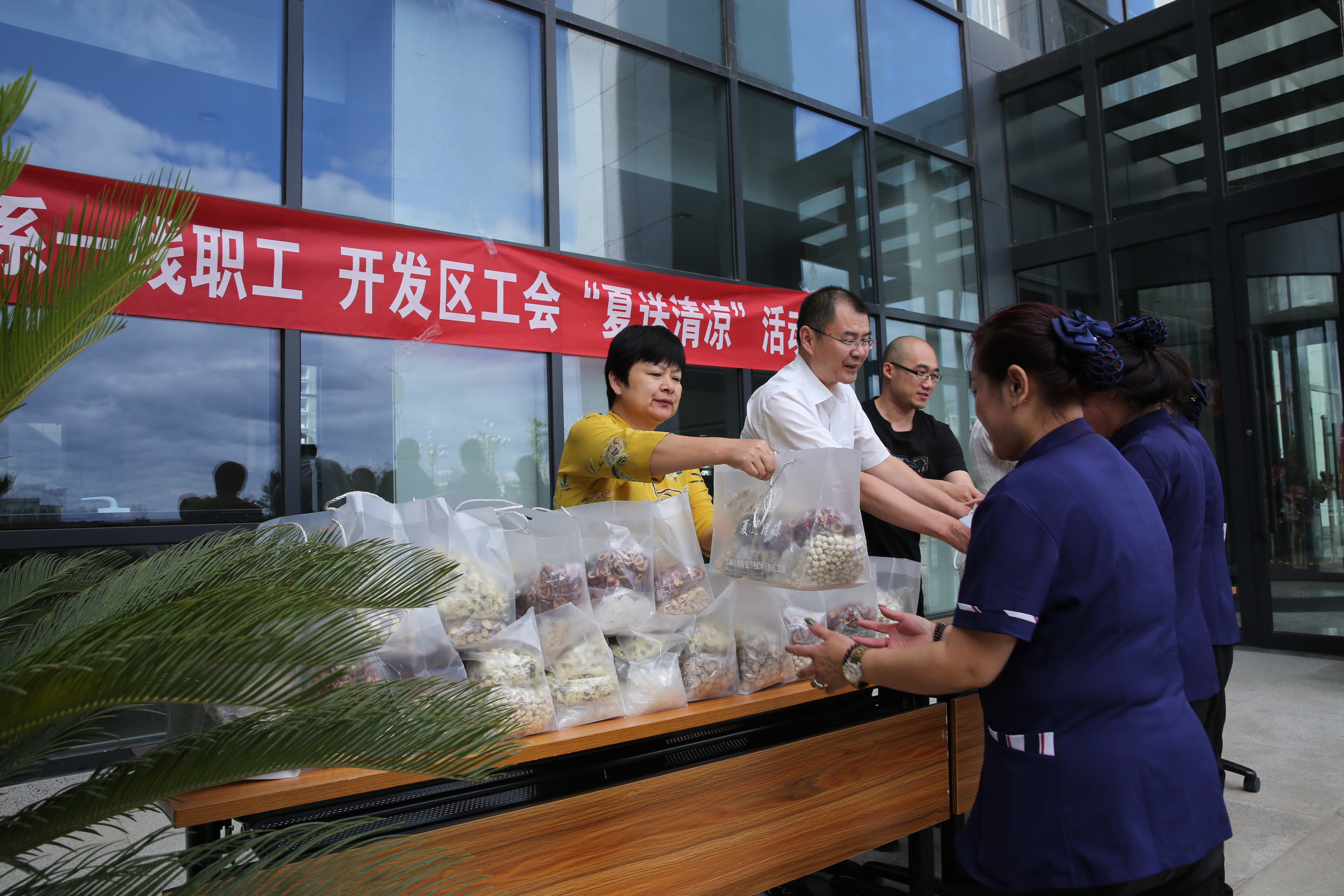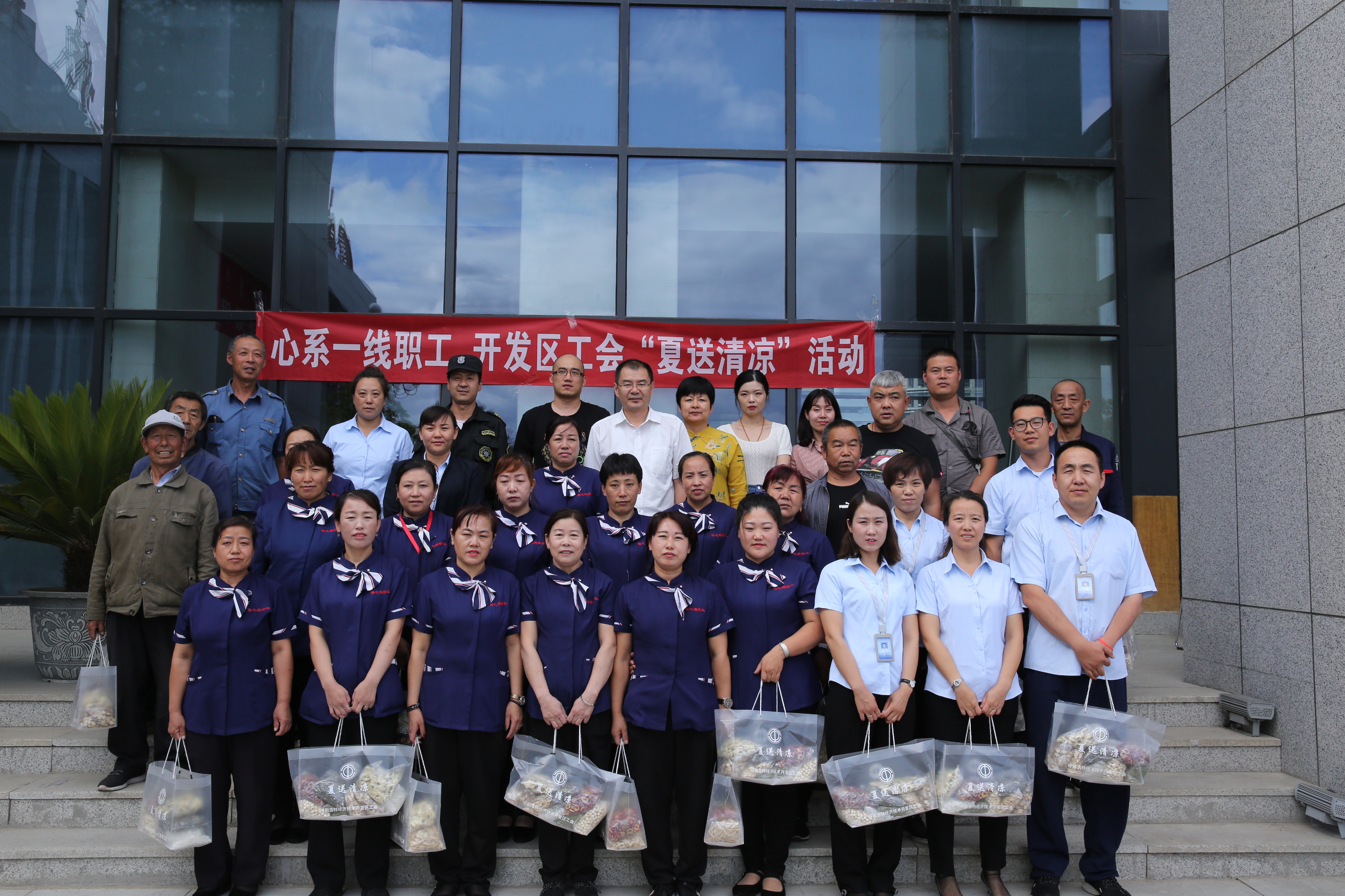为切实做好高温防暑降温工作,保障一线员工的身体健康,落实一线员工防暑降温措施,8月28日,呼和浩特留学人员创业服务中心工会联合开发区机关工会开展了夏送清凉慰问活动。为园区物业公司31名一线员工发放了菊花、冰糖、茶叶等夏季消暑慰问品,希望员工在坚守岗位的同时,注意做好防暑降温工作,并对他们不辞辛苦在高温天气下坚守岗位,认真履职,为园区的稳定做出积极的贡献的精神给予了肯定。