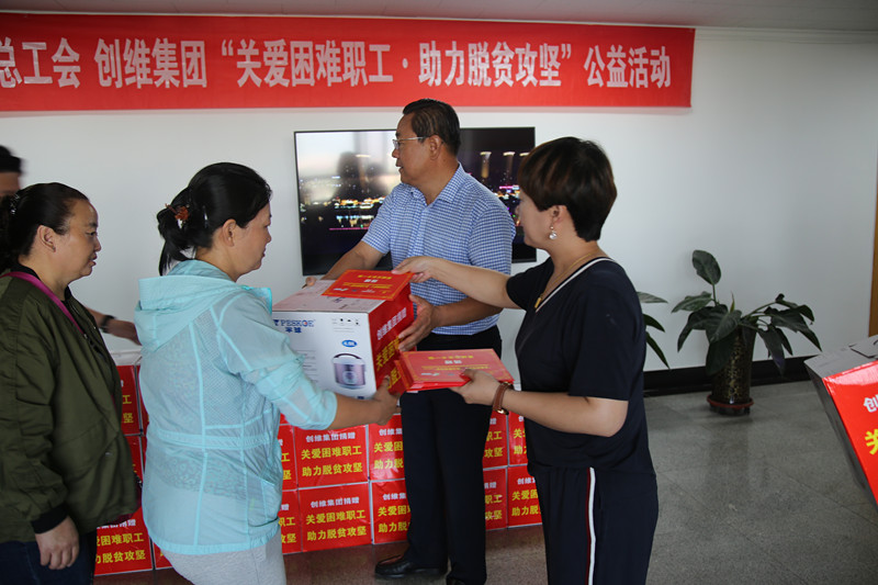 活动启动仪式上,新城区总工会向困难职工们发放了由创维集团赞助的电饭锅、开沃集团赞助的公交车卡、由内蒙古广电呼市分公司赞助的有线电视费年卡。