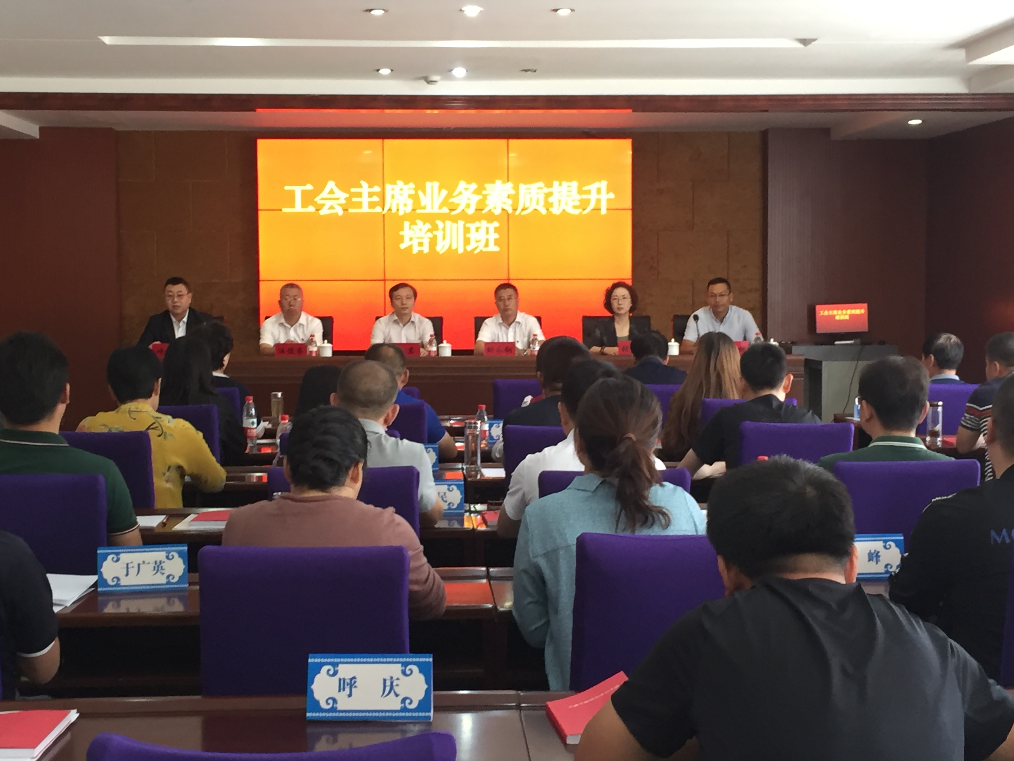 为进一步提高工会主席理论水平和业务能力,增强做好新形势下工会工作的责任感和使命感,特别是加强对习近平总书记关于工人阶级、工会工作重要论述的学习研究和实践运用, 呼市总工会于2019年9月2日—5日,在内蒙古自治区工会干部学校伊金霍洛旗分校举办了为期三天的工会主席业务素质提升培训班。旗县区、开发区(工业园区)及各产业工会所属基层工会的42名工会主席参加了培训。内蒙古自治区工会干部学校校长刘永钢,市总工会党组书记、副主席汪俊亭,市总工会党组成员、副主席张瑞新,内蒙古自治区工会干部学校伊金霍洛旗分校校长王有林出席开班仪式。