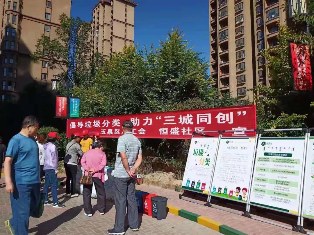 8月29日上午,玉泉区总工会联合恒盛社区、大连新天地环境清洁有限公司呼和浩特市分公司在秋实璟峯汇小区开展了“倡导垃圾分类 助力‘三城同创’”主题活动。