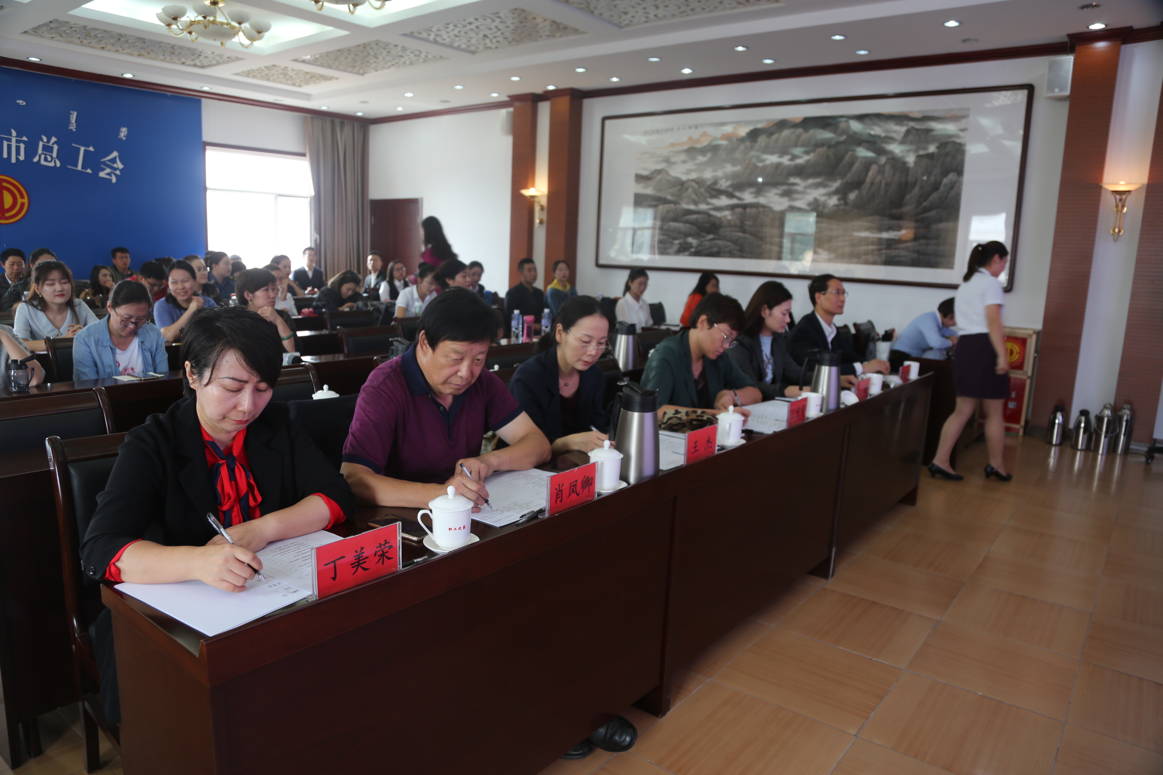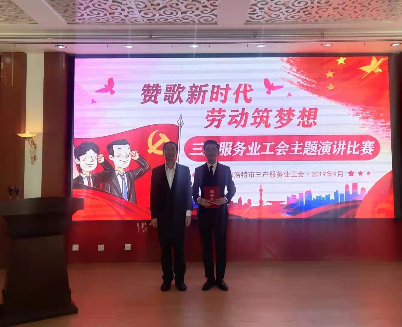 9月20日下午,呼市三产服务业工会举办了“赞歌新时代·劳动筑梦想”为主题的三产服务业工会第三届职工演讲比赛,内蒙古建筑建材交通机冶工会副主席王玲、市总工会兼职副主席兰军出席了本次活动。