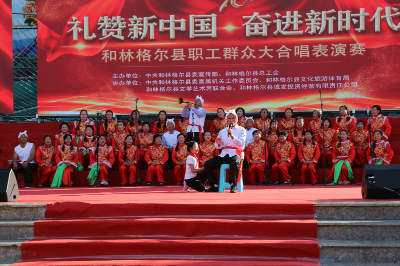 为庆祝中华人民共和国成立70周年,营造团结奋进的浓厚氛围,充分展示新中国成立70周年的光辉历程和伟大成就,发扬党的光荣传统和优良作风。9月24日下午,由中共和林格尔县委宣传部、和林格尔县总工会主办,中共和林格尔县委直属机关工作委员会、县文化旅游体育局、县文学艺术界联合会、县城发投资经营有限责任公司协办的“礼赞新中国 奋进新时代”和林格尔县职工群众大合唱表演赛在盛乐广场隆重举行。