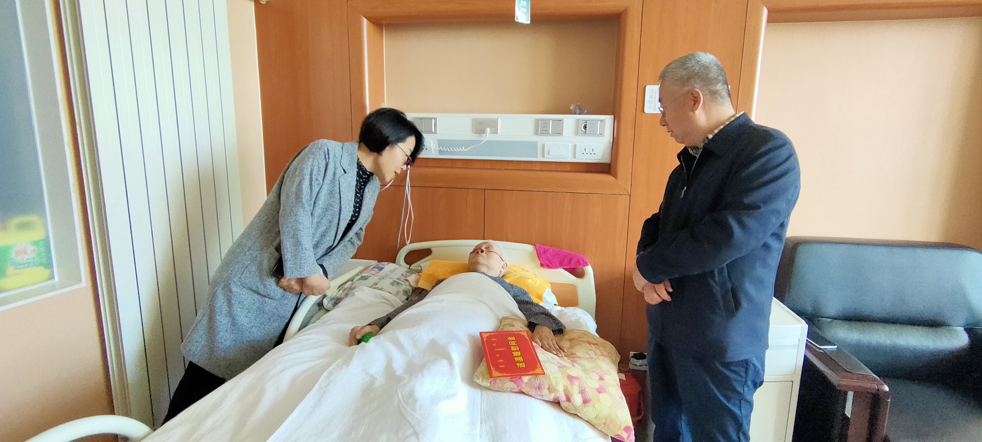 在内蒙古自治区人民医院老干部病房,汪俊亭代表党组向离休老党员李哲同志致以崇高的敬意和亲切问候,关切地询问老同志的病情、身体状况和治疗情况,并送上慰问金,汪俊亭叮嘱医院医护人员和家属,要做好老干部医疗服务保障工作,为离休老干部创造良好的医疗、生活环境,让老同志早日康复。