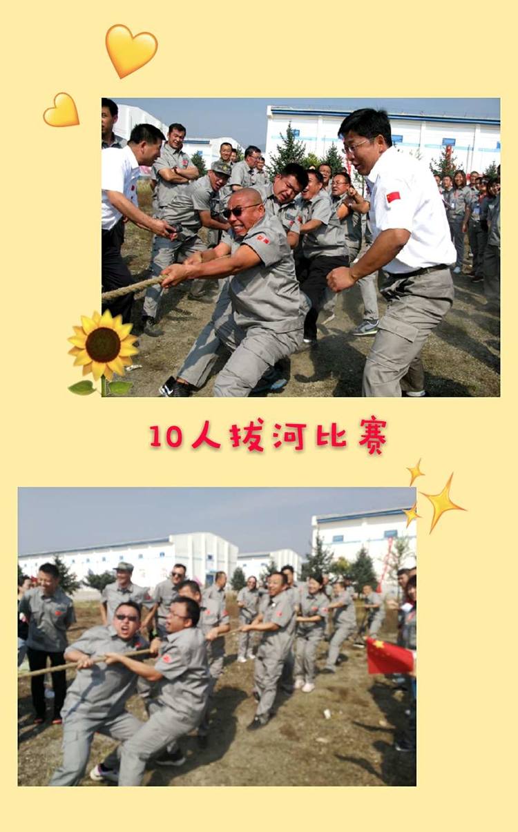 10人拔河比赛是必不可少的一项集体项目。各队齐心协力,勇于拼搏,场外呐喊声、助威声、掌声此起彼伏。“一毽钟情”“摸石过河”“计时跳绳”“划船比赛”“3x20米双脚夹球来回接力”等趣味性比赛妙趣横生,观众加油呐喊,笑声不断。竞技项目里羽毛球单打、兵乓球单打和3人组篮球团体比赛中,参赛者各尽所能,挑战自我,再创辉煌佳绩。