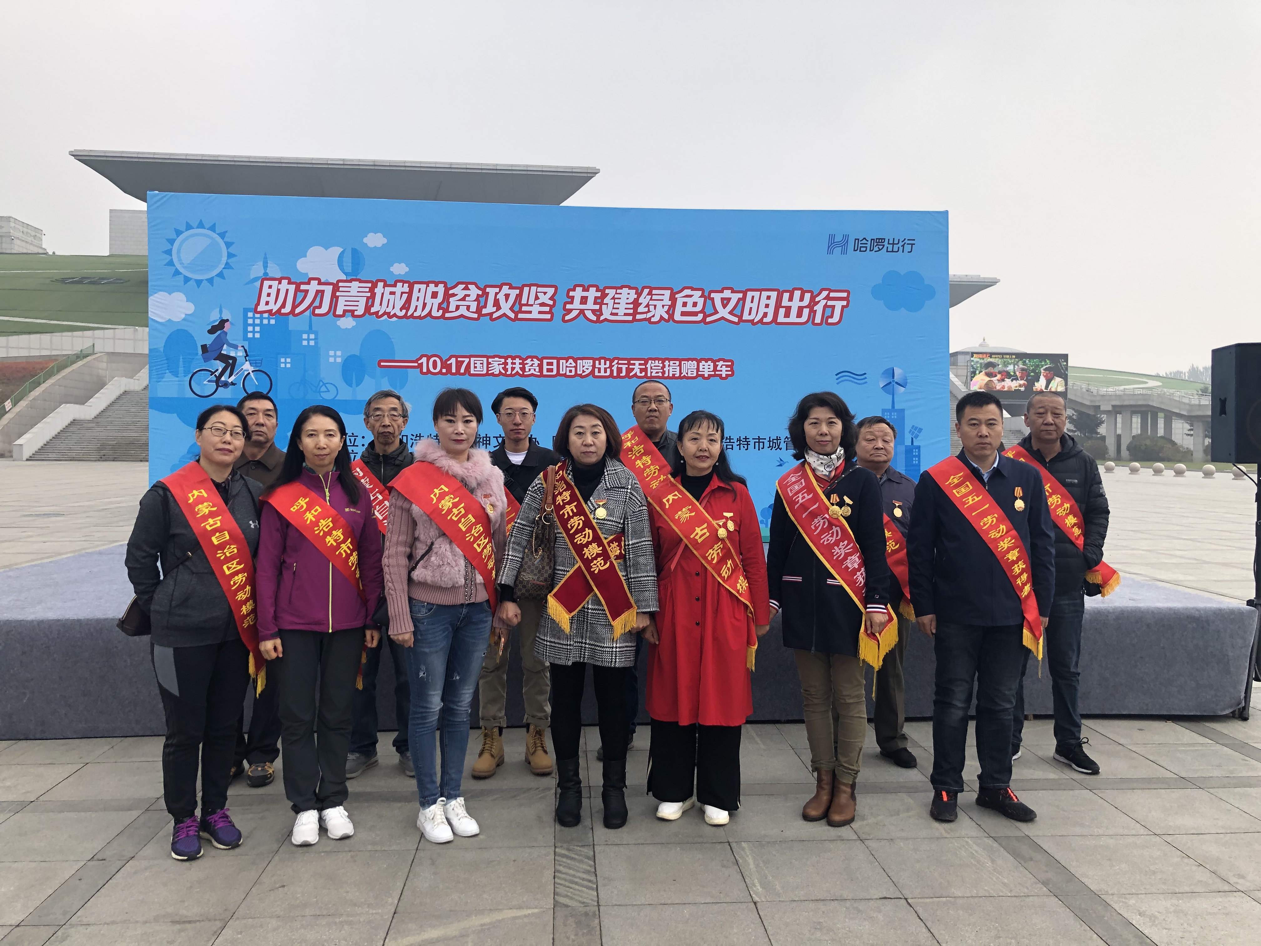 10月17日上午,在第六个全国扶贫日来临之际,呼和浩特市总工会组织各级劳动模范代表15名在内蒙古博物院广场,参加由市精神文明建设委员会办公室、市交通局、市城管局举办的“助力青城脱贫攻坚,共建绿色文明出行”活动。