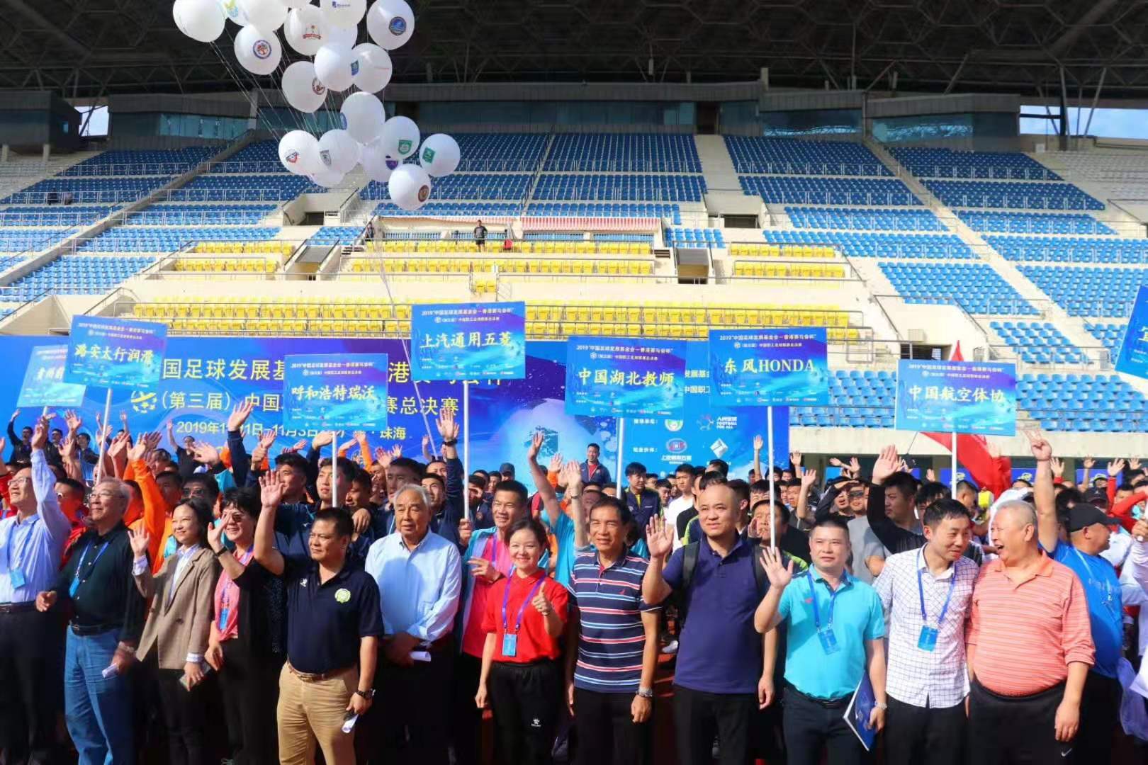 2019年11月3日下午,2019“中国足球发展基金会-香港赛马会杯”(第三届)中国职工足球联赛总决赛,在广东珠海市体育中心落下帷幕。来自煤矿、铁路、公安、电子、汽车等16个行业,以及东北、华北、华南、西南4大赛区的32支赛区赛优胜球队经过3个比赛日、48场比赛的激烈比拼,大连湾职工足球队勇夺十一人制超级组冠军,呼和浩特职工足球队获得十一人制精英组第六名。