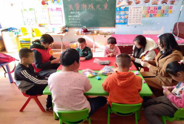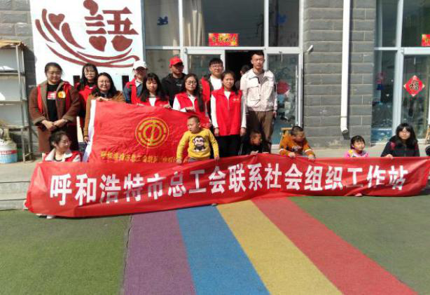 2019年3月,由各社会组织职工志愿者组成的呼和浩特市总工会联系社会组织工作站志愿服务队走进位于赛罕区的心语爱心康复中心,去探望康复中心的孩子们。工作站志愿者们给孩子们购置了学习和生活用品,为孩子们清洗衣物,并和孩子们进具体沟通交流,一起做游戏,给孩子们送去温暖。