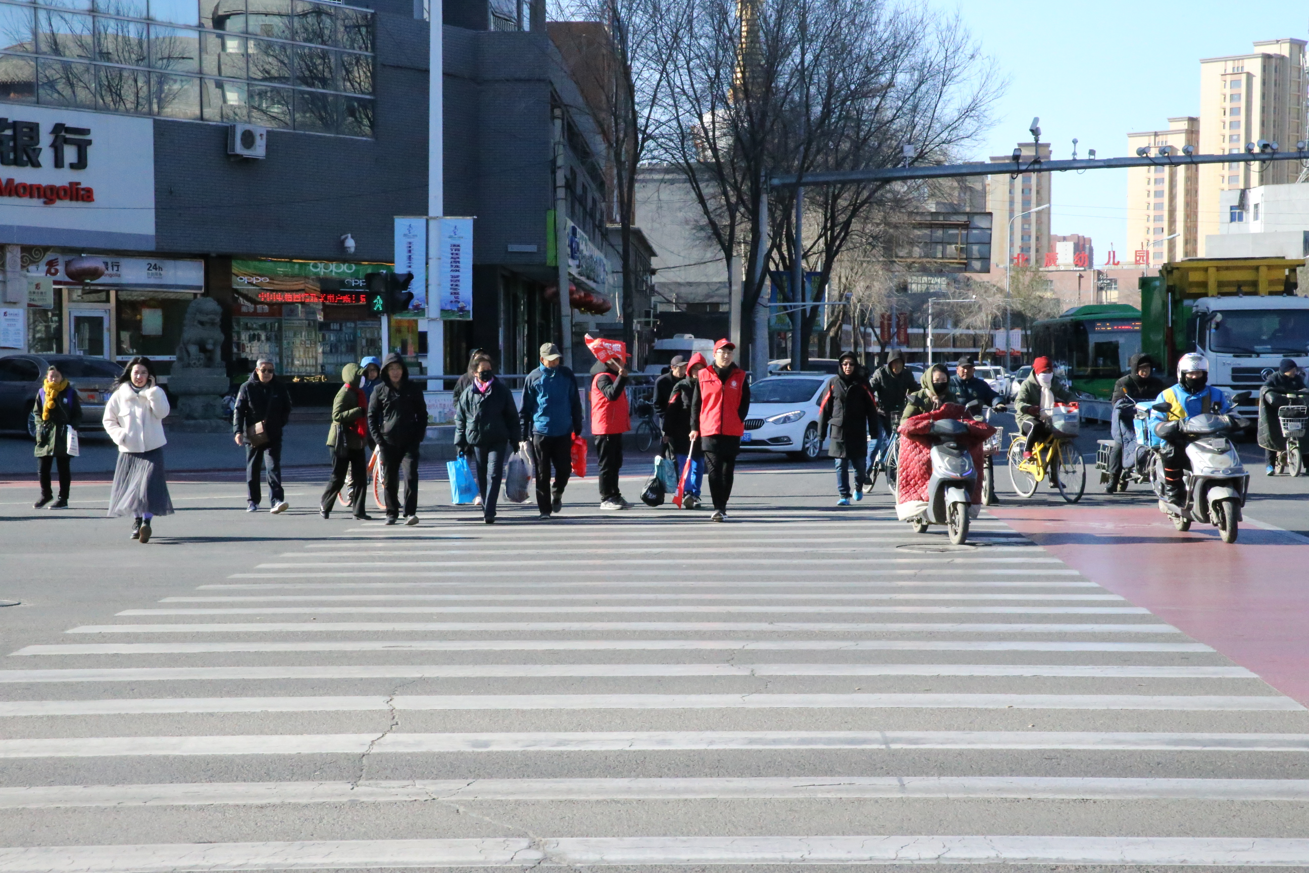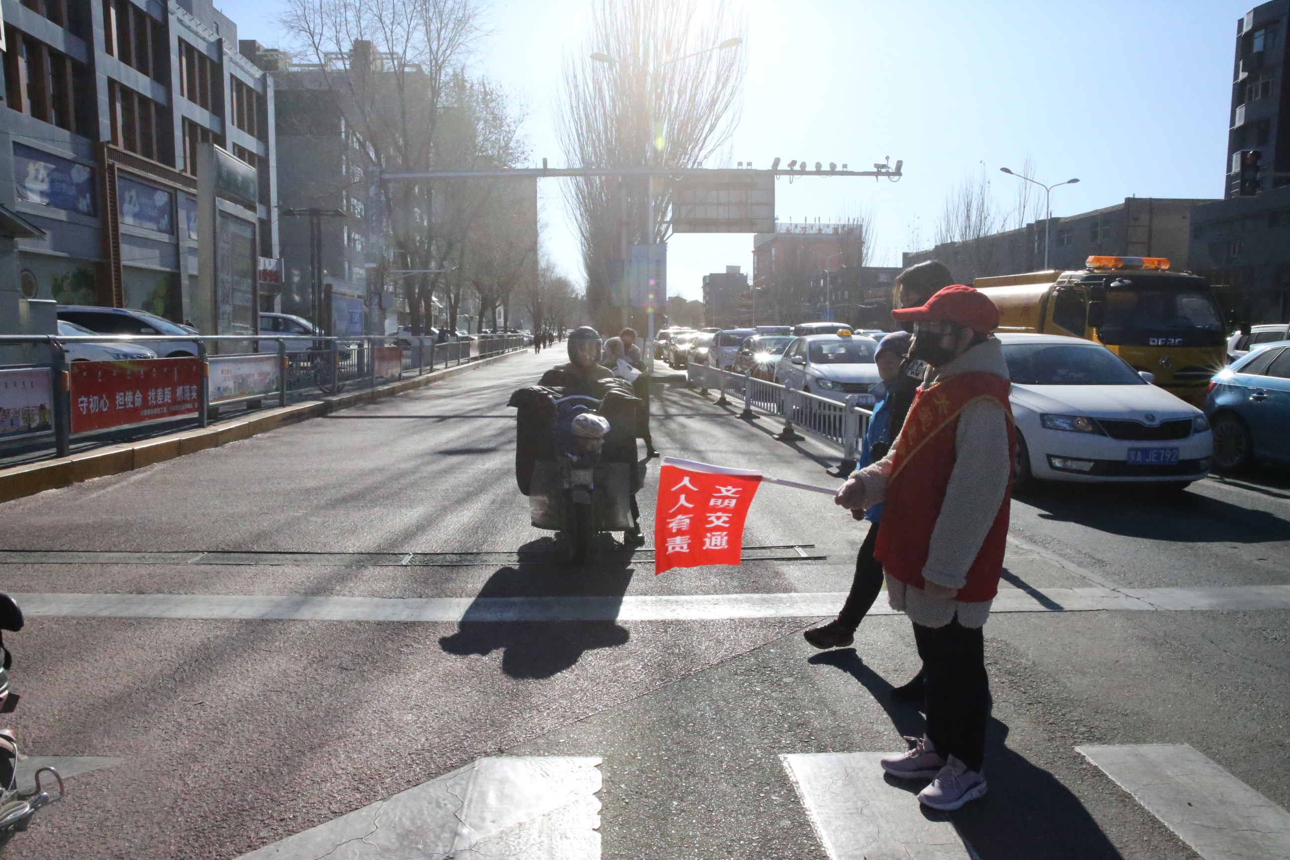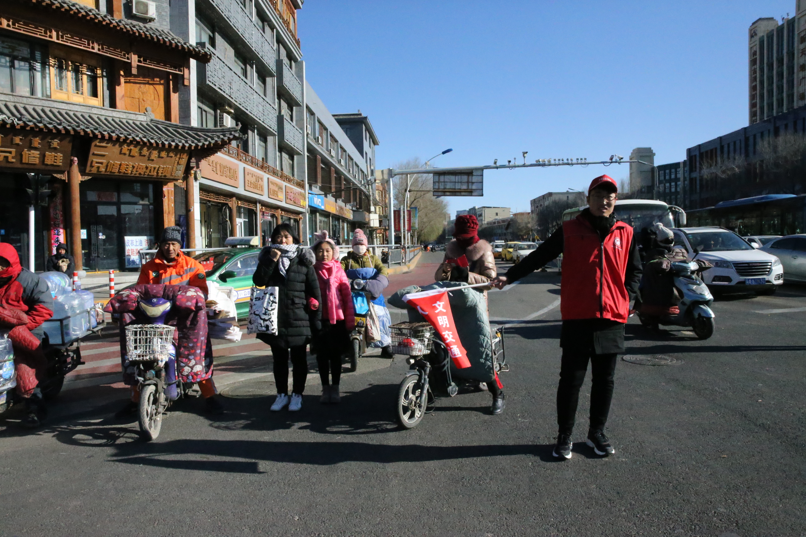 11月25日,呼市总工会职工志愿者助力“三城同创”,志愿者们在呼市玉泉区主要交通路口协助交警维护交通秩序,引导车辆有序停放,对行人、非机动车随意横穿马路、闯红灯等不文明行为进行劝阻。