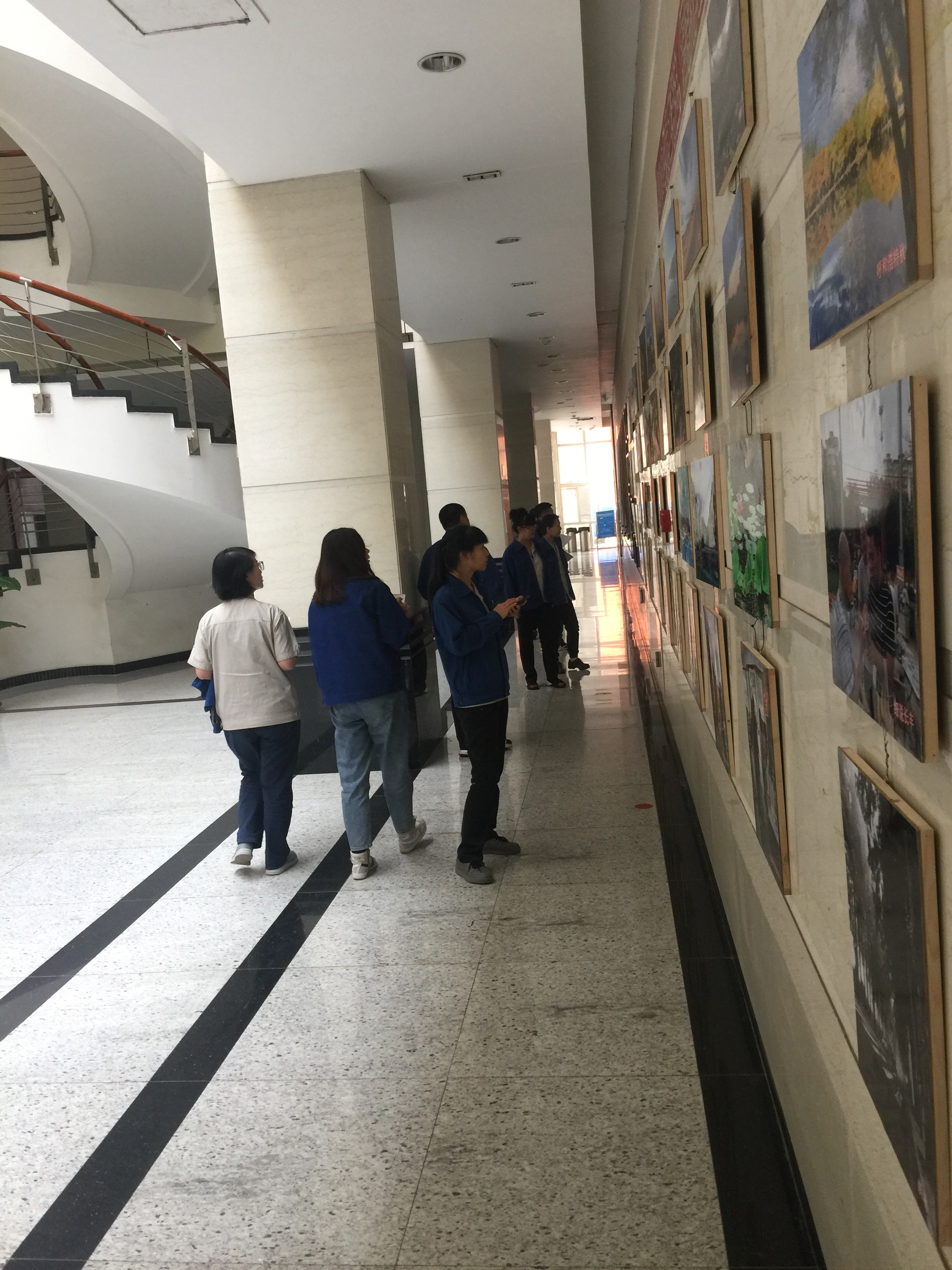 获奖作品在该公司综合楼一楼进行展示,吸引众多员工纷纷驻足品评、欣赏。