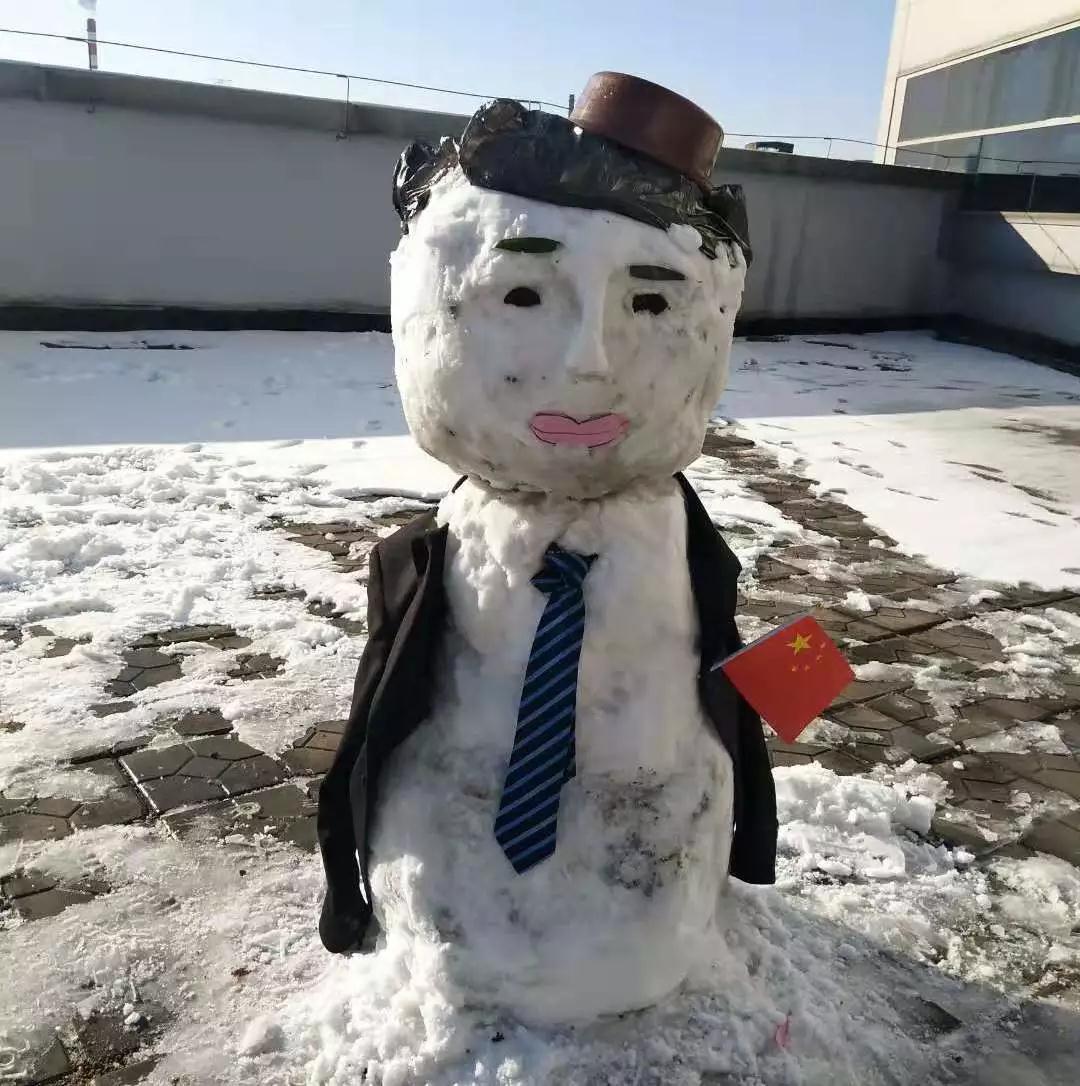 员工们有的脱下衣服,有的摘下眼镜、帽子、手套等为小雪人戴上,使得小雪人顿时“精神抖擞”。