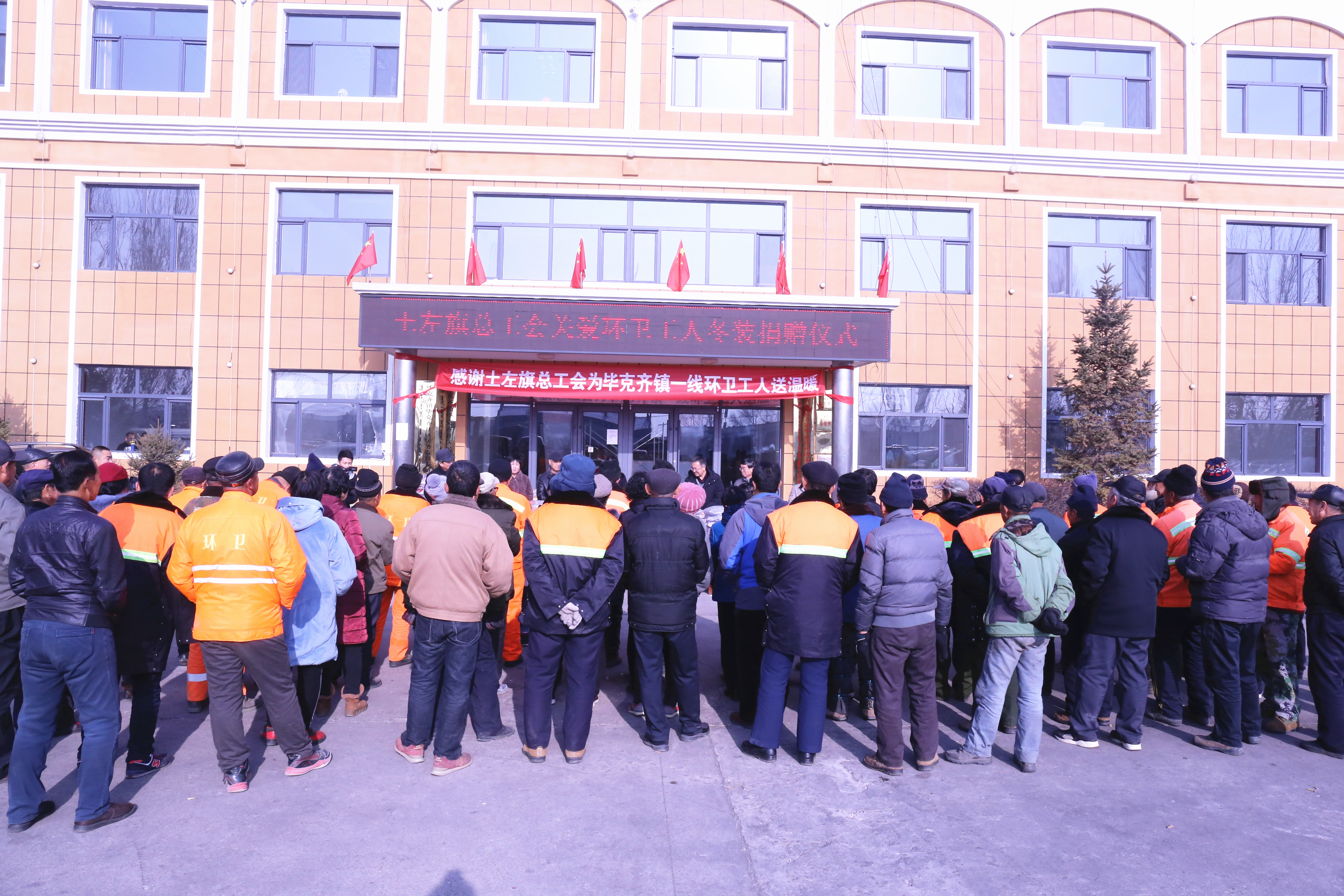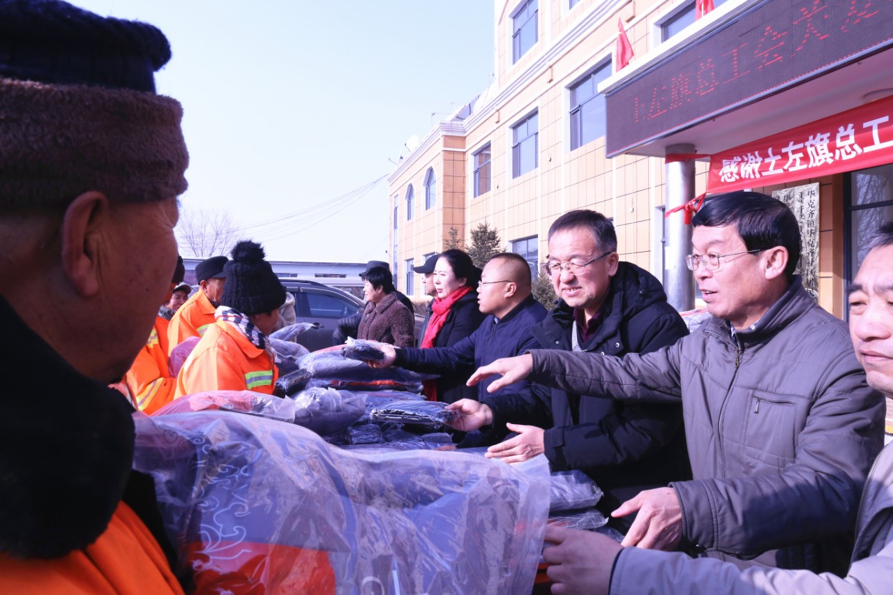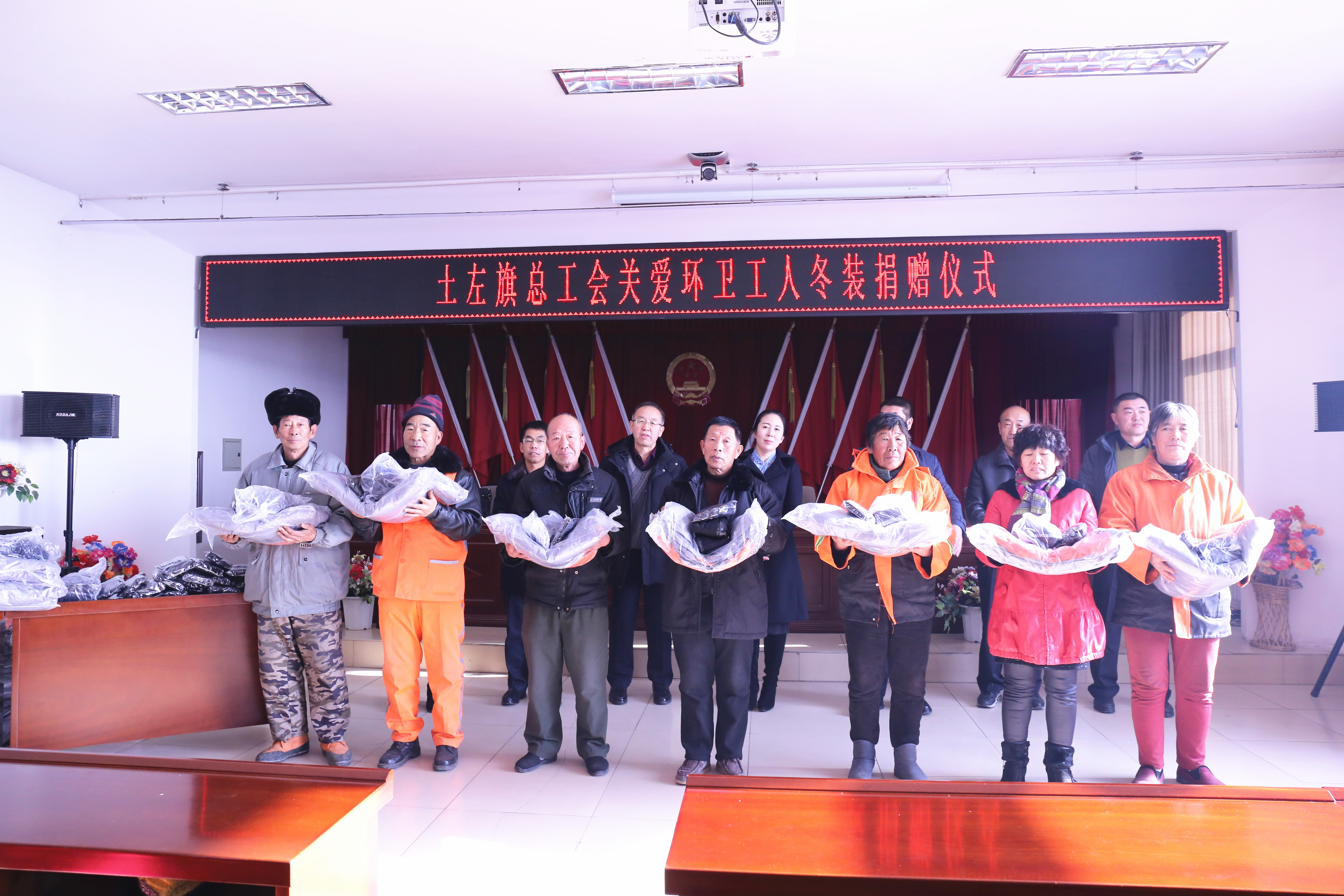 捐赠仪式上,土左旗总工会领导班子亲手为环卫工人们发放了棉服,并向他们表达了敬意,再三叮嘱环卫工人在冬季一定要注意做好防冻保暖工作。此次活动共向全旗环卫工人捐赠防风防雪的棉衣、棉鞋、棉手套206套,价值69628元,传递了党和政府及工会组织的浓浓温情。