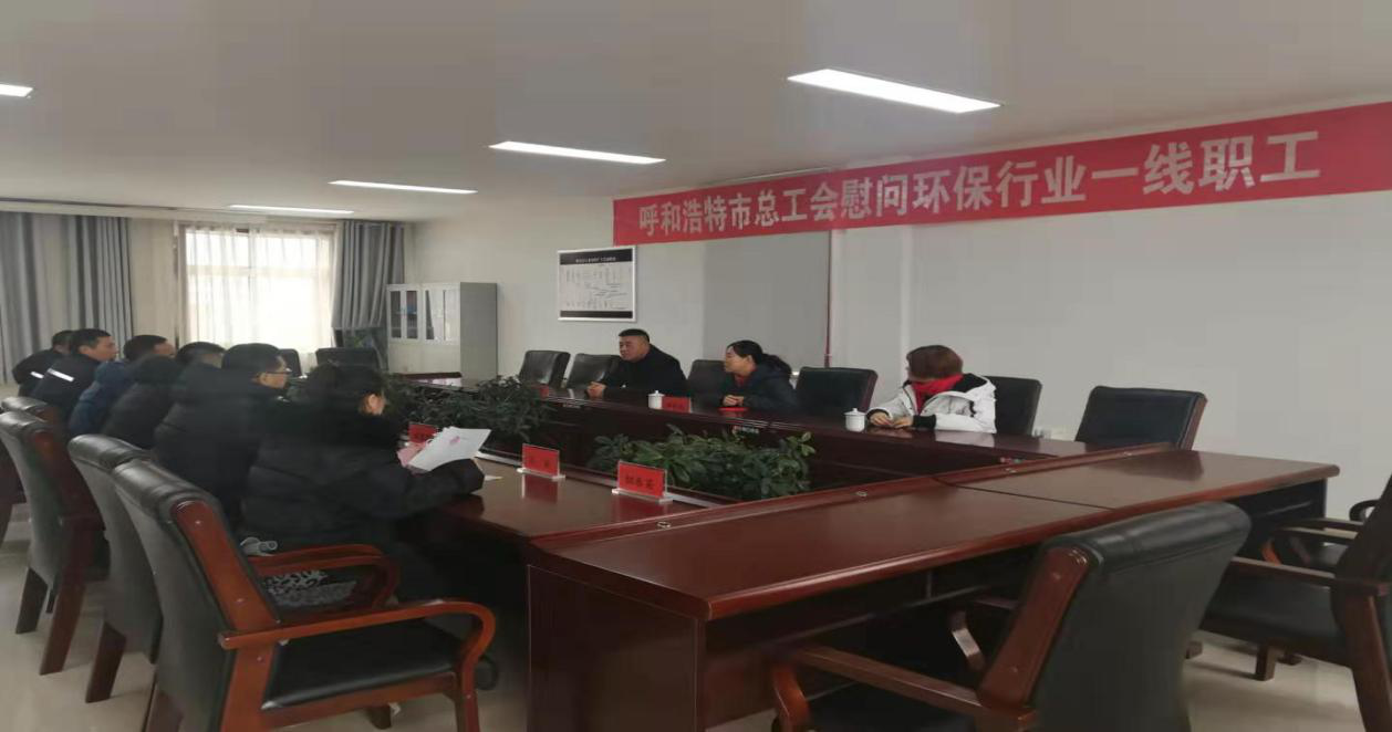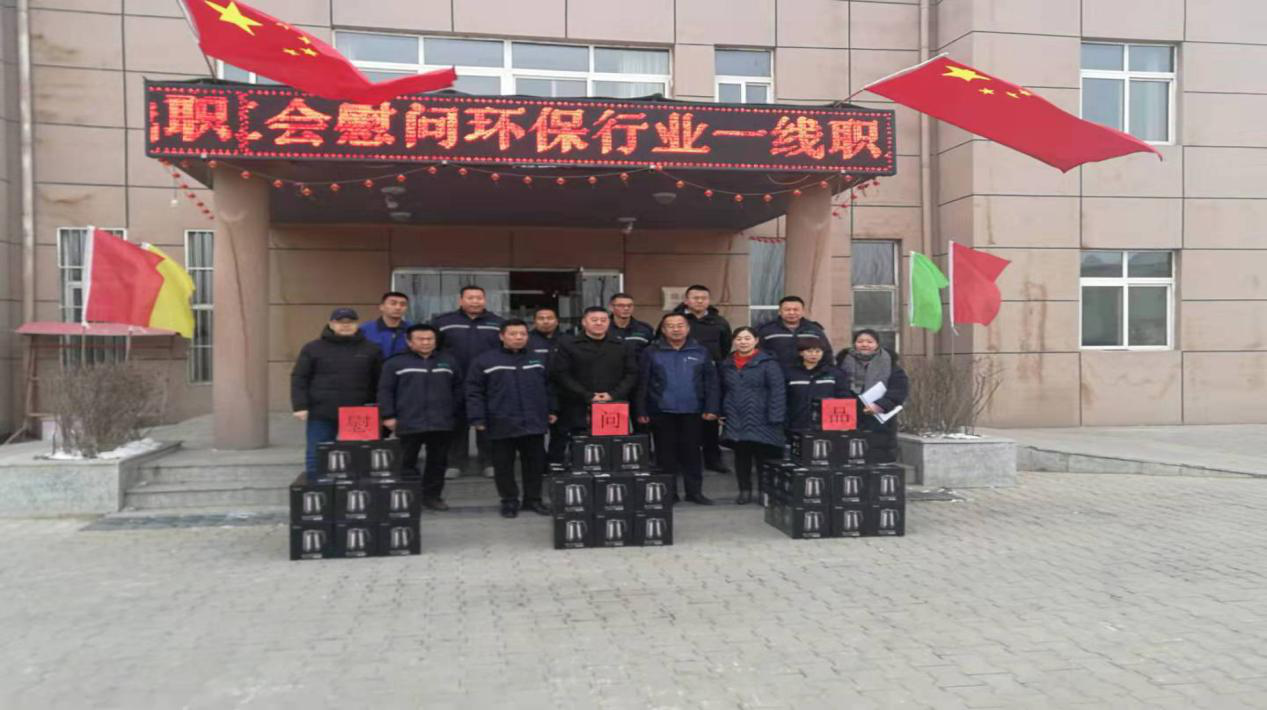 12月25日下午,呼市总工会兼职副主席马黎鸣、食品乳品药品工会负责人一行代表呼和浩特市总工会到呼和浩特班定营污水处理厂进行慰问及调研,同时向全年奋斗在环保一线岗位的65名职工致以节日的问候和祝福,会后发放了节日慰问品。