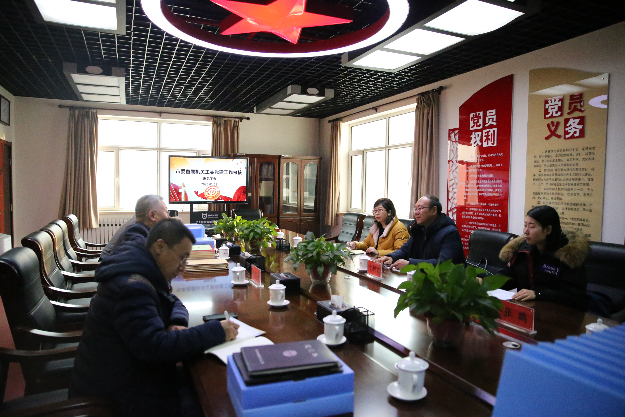 2020年1月2日下午,市委直属机关工委党建工作考核组于树文、李杨、李亚琼、张鹏一行四人到市总工会对2019年度党建工作情况进行了考核,市总工会党组书记、副主席汪俊亭主持会议。