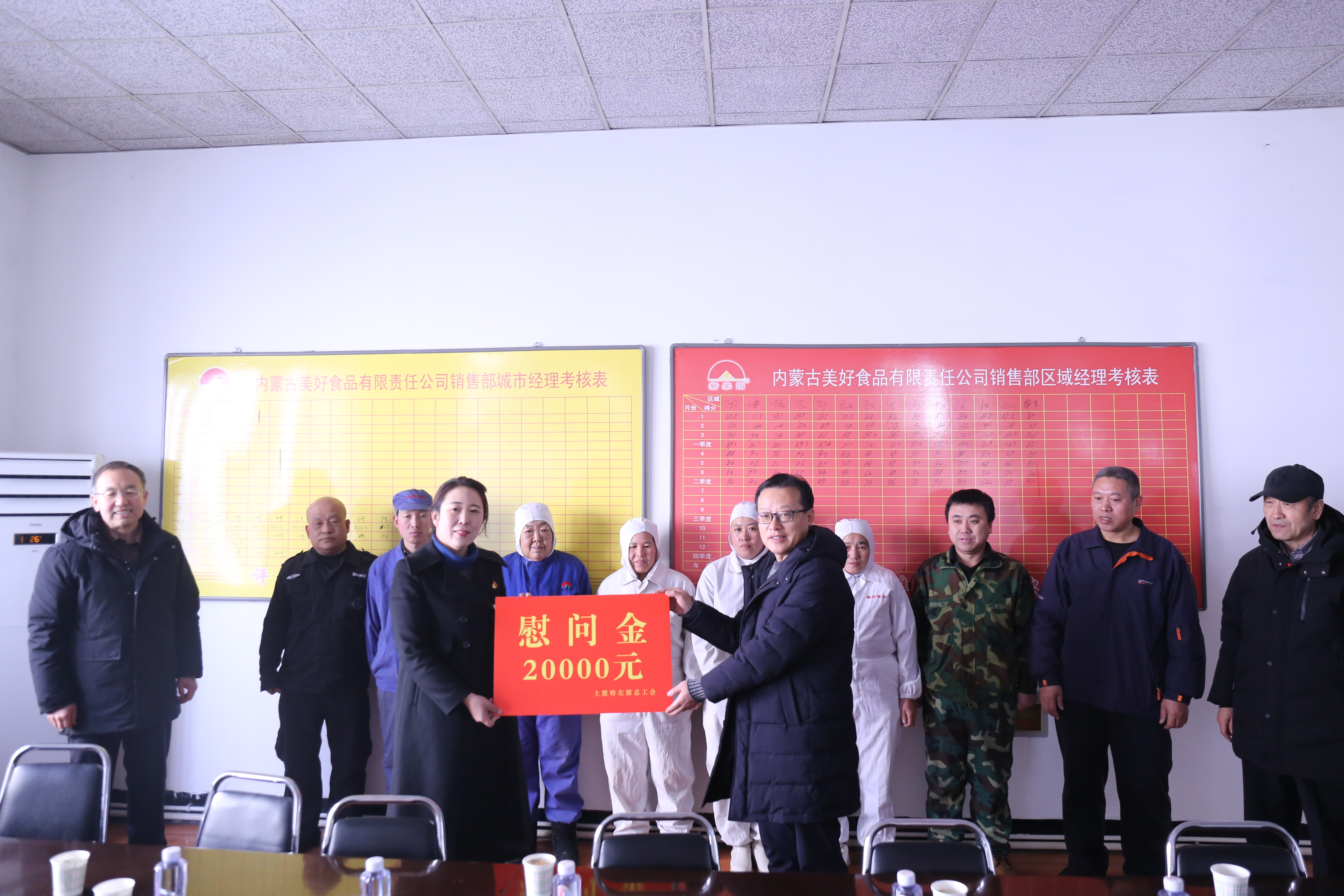 随后,慰问组先后走访了土左旗北方稀土生一伦高科技有限公司、内蒙古瑞隆重工装备制造有限公司、呼和浩特市强力煤矿机械有限责任公司、内蒙古美好食品有限责任公司,详细了解了企业生产经营方面存在的困难,就如何促进企业发展、维护职工合法权益广泛听取职工意见,同时分别为困难企业送去了慰问金,共计7万元。