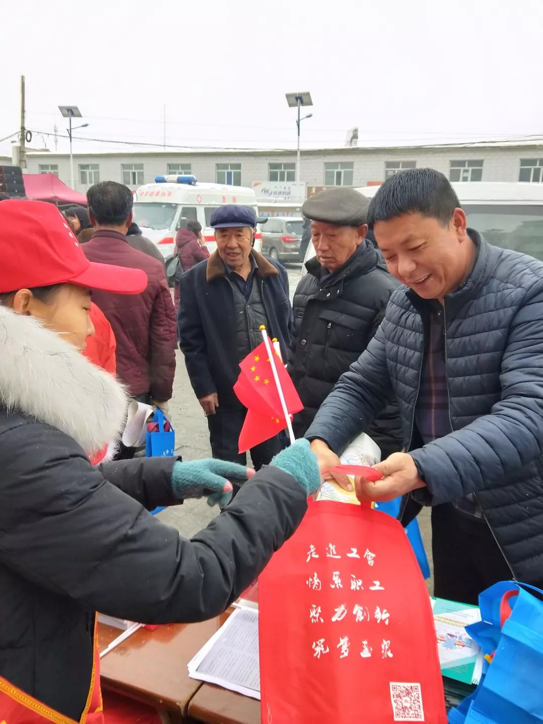 活动现场人头攒动,暖意融融,玉泉区总工会志愿服务者们向村民们发放了《工会法》《工会常用政策法律法规汇编》《农牧民工知识问答》等宣传资料300余册。