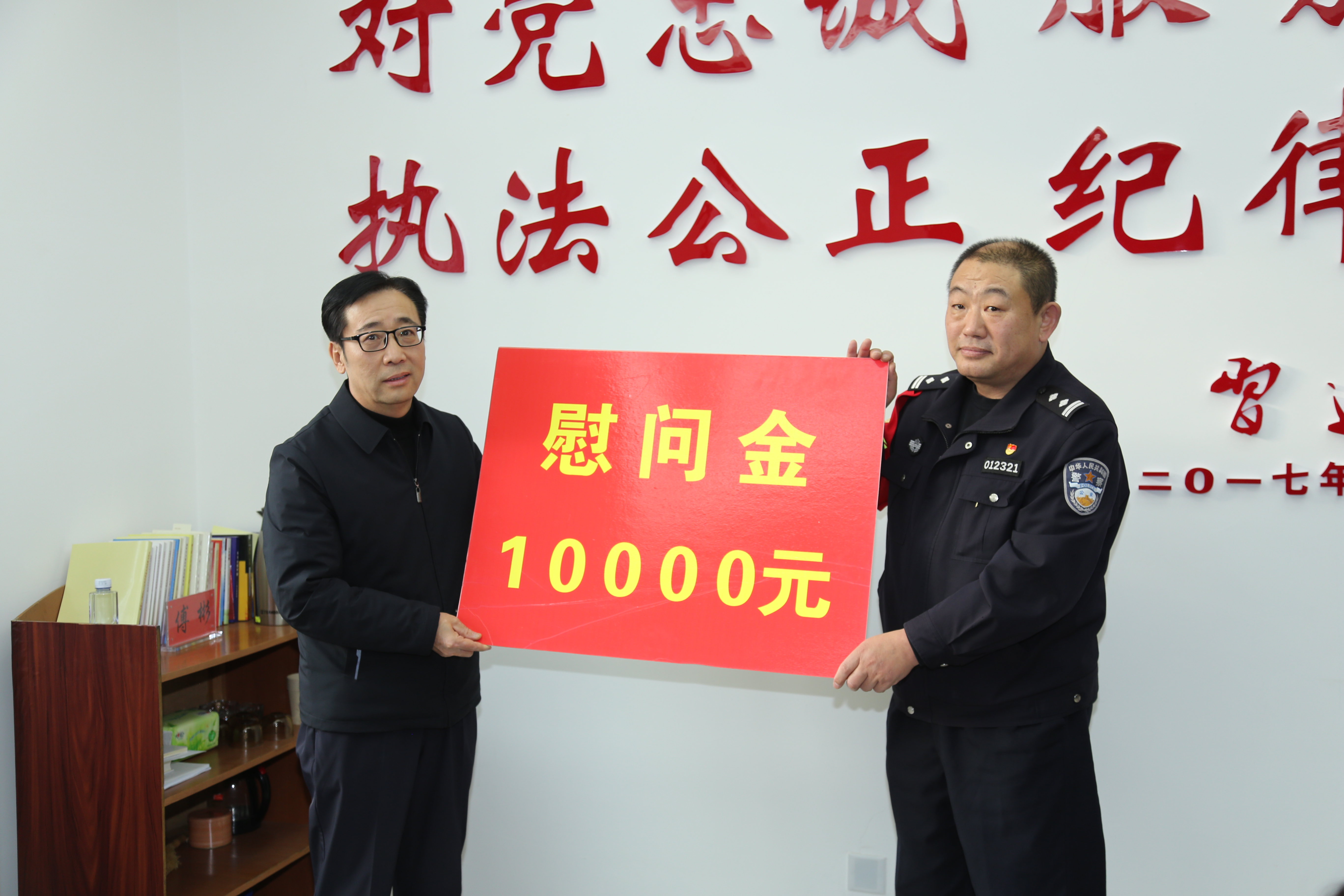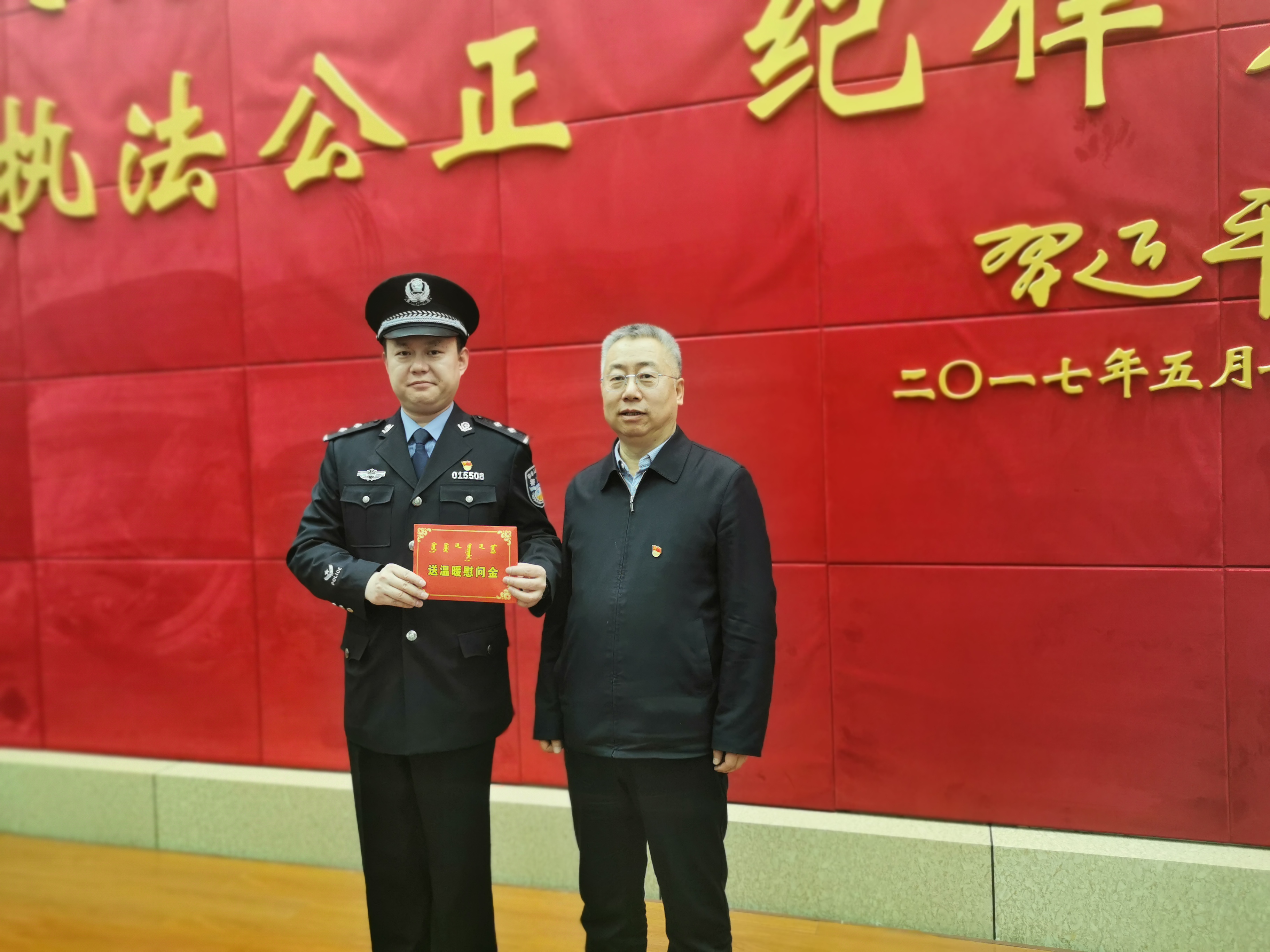 雪后初晴,寒气逼人。1月15日下午,呼和浩特市委副书记、政法委书记贺海东等一行慰问全市元旦春节期间仍然坚守在岗位上的公安干警们,送去新春的问候及慰问金总计11万元。呼和浩特市总工会党组书记、副主席汪俊亭等陪同慰问。