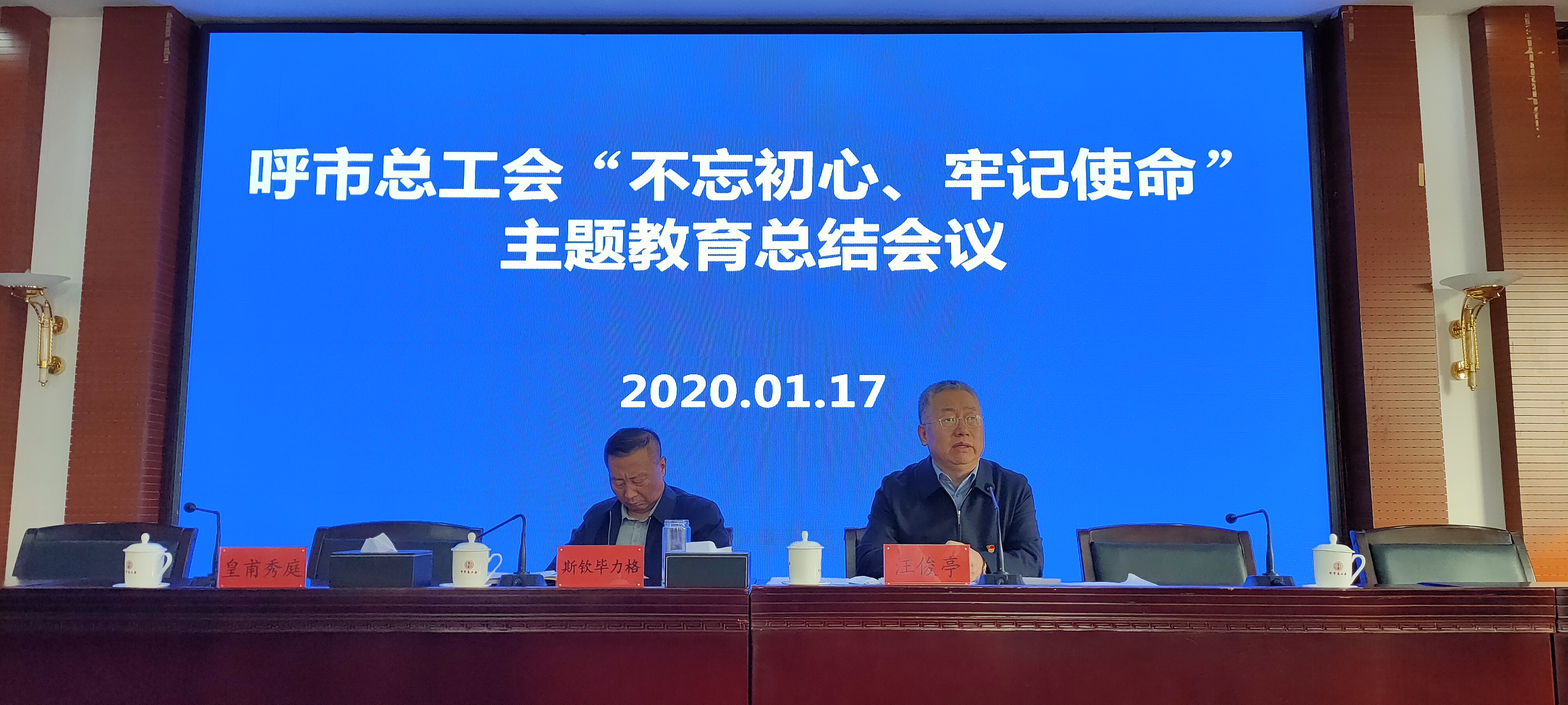 1月17日下午,呼和浩特市总工会召开“不忘初心 牢记使命”主题教育总结会议。市总工会党组书记、副主席汪俊亭主持会议,市人大常委会副主任、总工会主席斯钦毕力格,市纪委监委派驻市总工会纪检监察组组长、市总工会党组成员任增刚出席会议、市委主题教育第十七指导组副组长皇甫秀庭及指导组成员李世宏到会指导。