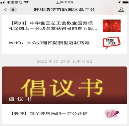 自新型冠状病毒感染肺炎疫情发生以来,呼市新城区总工会迅速行动,按照新城区委、区政府和市总工会的总体安排,组织各基层工会,动员广大工会干部和职工群众凝心聚力,积极投入到疫情防控工作中。
