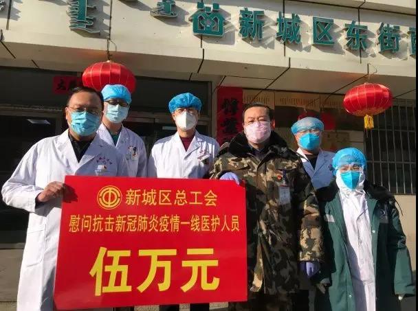 1月26日,新城区政协副主席、总工会主席杨军,总工会党组书记、常务副主席李浬带队,第一时间成立了临时党支部,组织4名党员和9名工会干部进入所包联的呼哈路社区、锡林路街道中山里社区、车站东街社区、展东路社区等进行疫情摸底、排查、执勤、宣传工作,并慰问抗击疫情一线工作人员。新城区总工会先后投入15万元用于新城区的重点防控单位的抗疫保障工作。
