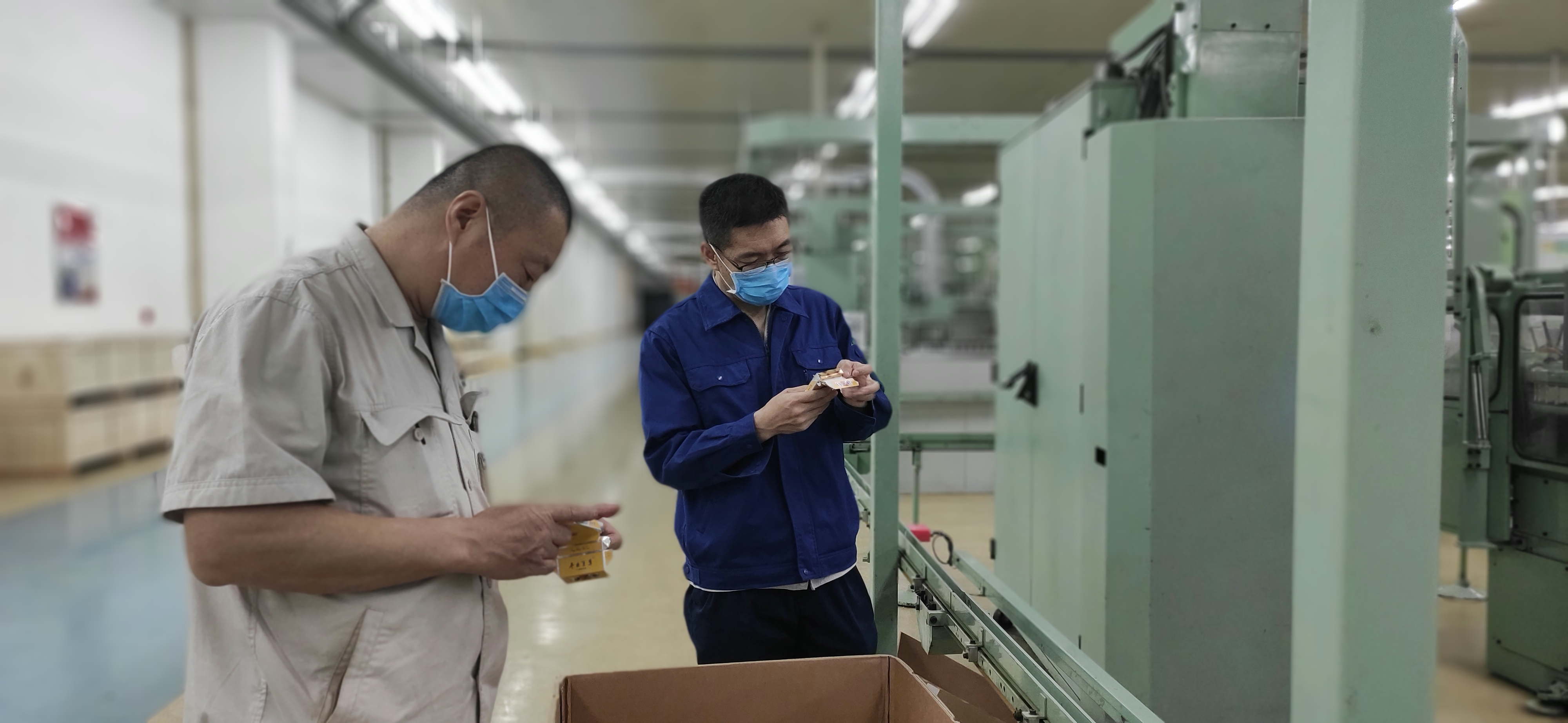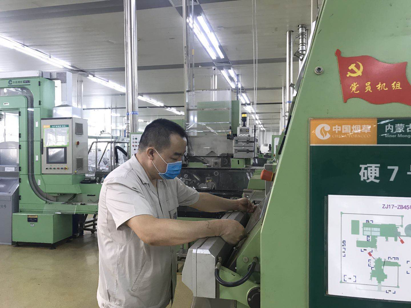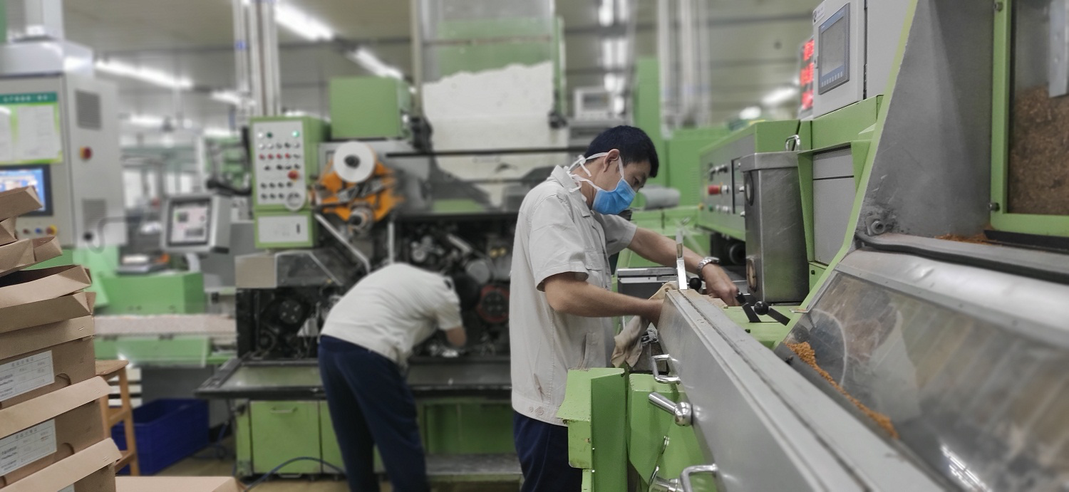 三、科学安排生产。在复工手续完备后,生产制造部制丝线、卷包线相继启动了。清扫、保养、换件、维修、组装----原本需要五个班维修工和两个班操作工完成的设备检修的工作,用原来不到一半的人员抗了下来,为了避免无防护接触,部门固定了饮水区域和四个就餐区域,并且规定了每一个人唯一的位置编号及相互间隔距离。