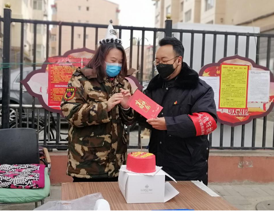 “祝你生日快乐,祝你生日快乐……”寒风中回响着生日歌。坚守在各卡点的工作人员收到了一份特殊时期的特殊的祝福。“组织没有忘记你们,你们辛苦了。”作为工会主席,社区人的辛苦和坚守他看在眼里,记在心上。他想尽办法,终于订到了蛋糕,开着车跑遍辖区所有卡点,给所有2月份过生日的“战士”们送上了特殊的祝福。
