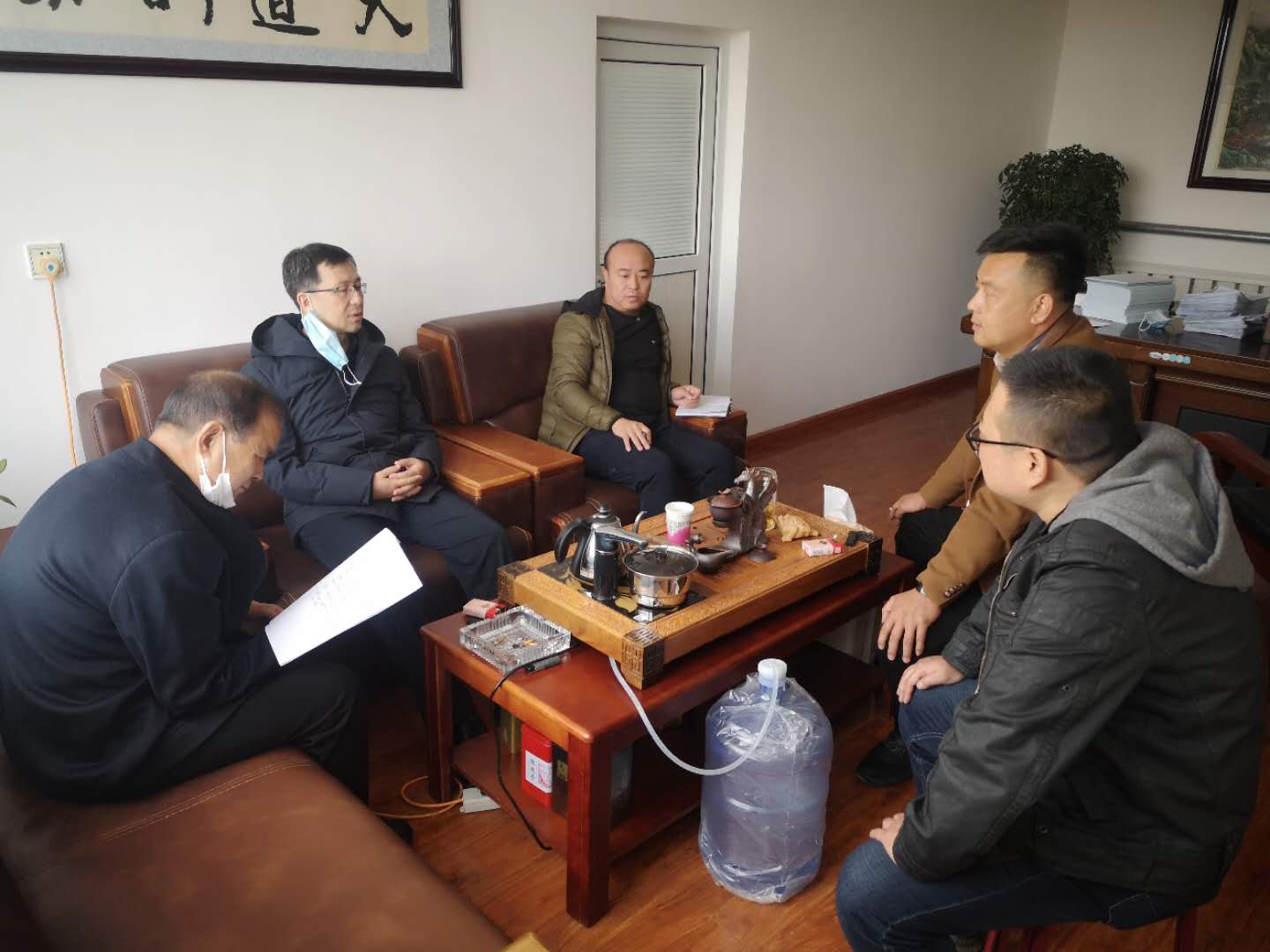 3月23日,武川县总工会党组书记、主席张显业一行深入武川县金三角开发区检查指导企业复工复产及疫情防控工作, 金三角开发区工会主席郭犇陪同检查。