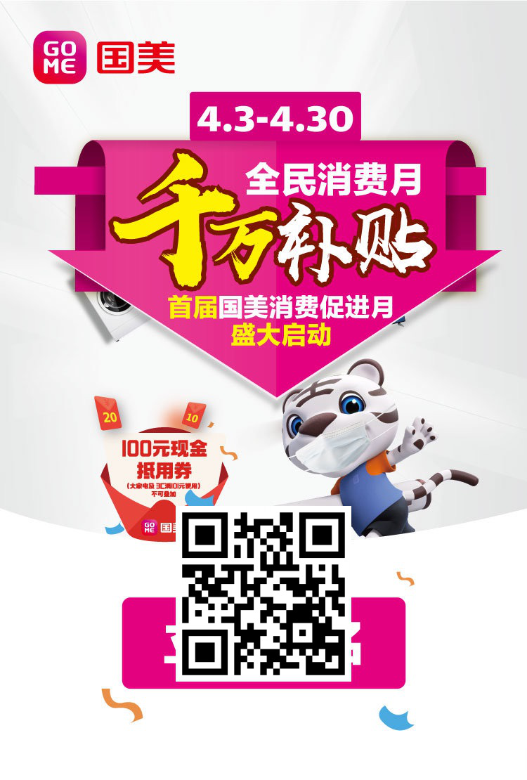 三、 呼和浩特市范围内发放500万元的消费劵,面值100元的50000张。同时给予在疫情期间工作在一线的医护人员、社区工作者(持工作证)享受双倍优惠。支持在确保做好疫情防控的前提下内蒙国美积极回馈消费者,并带动家电市场消费。