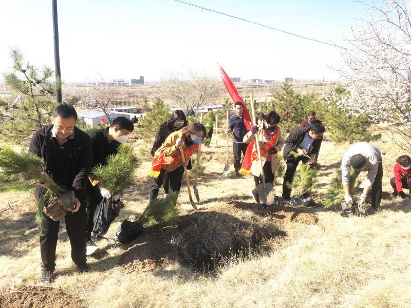 4月12日上午,土左旗总工会组织机关党员干部、新时代文明实践志愿者到察素齐镇朱尔沟村植树点参加土左旗2020年全民义务植树活动。