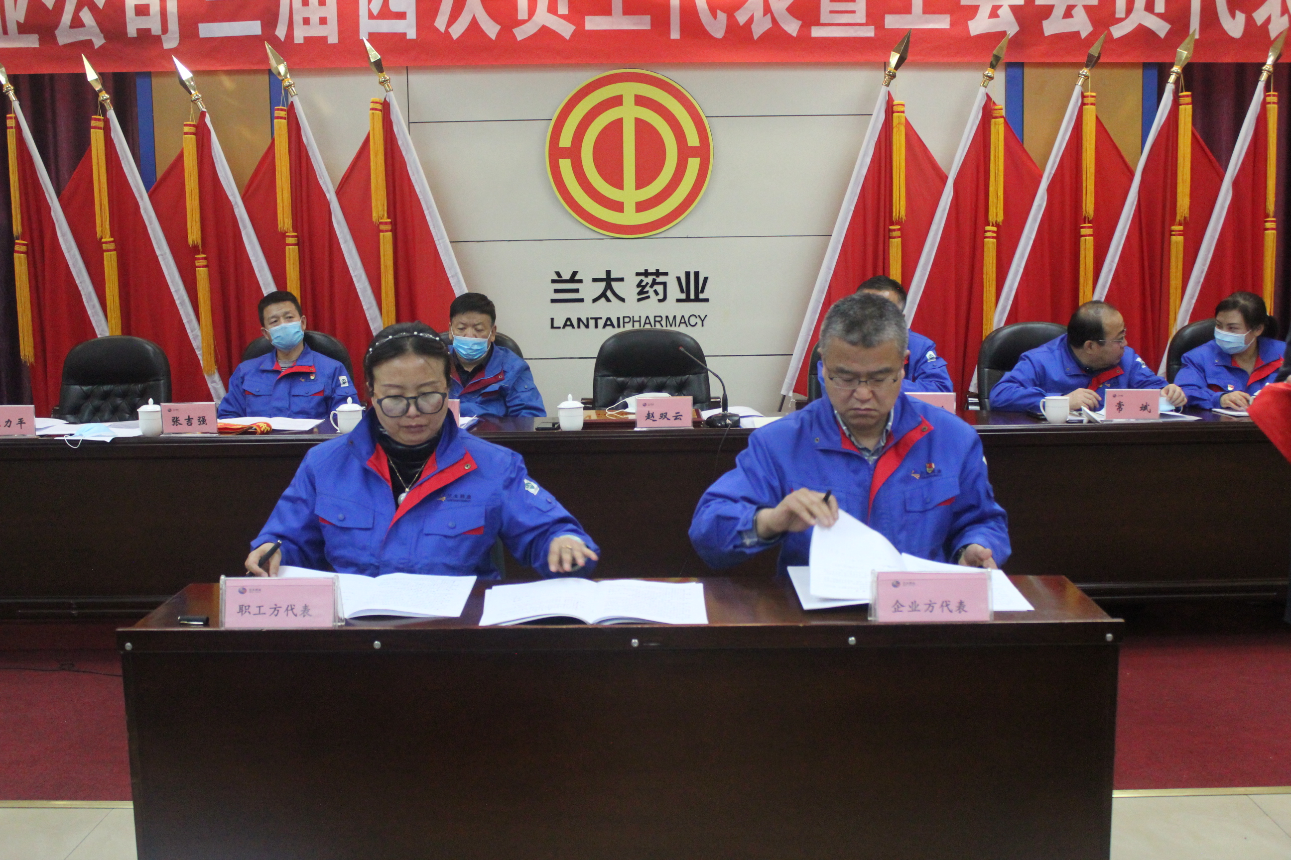 近日,兰太药业公司召开三届四次员工代表暨工会会员代表大会,来自各单位、部门的29名正式代表、8名列席代表参加会议。
