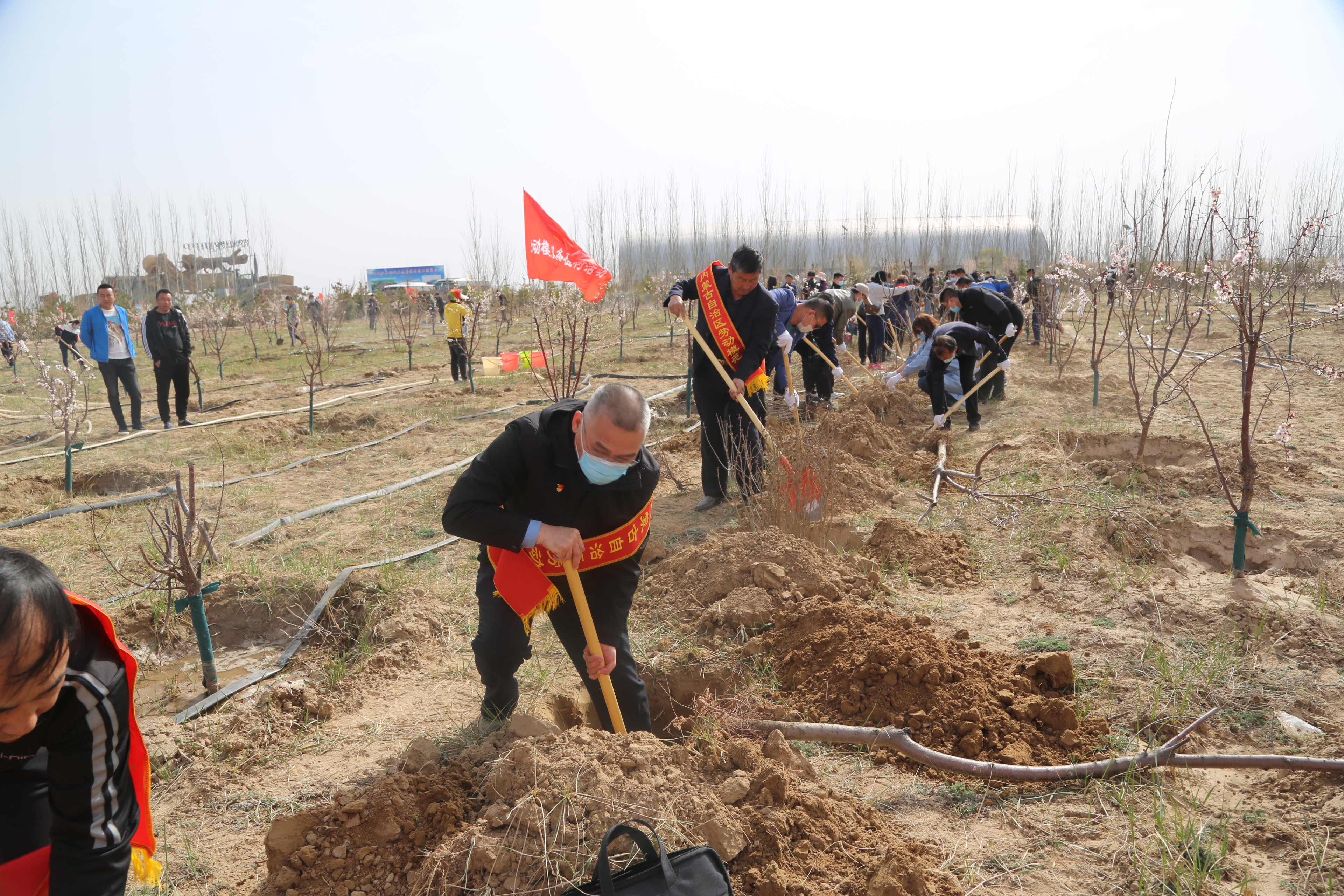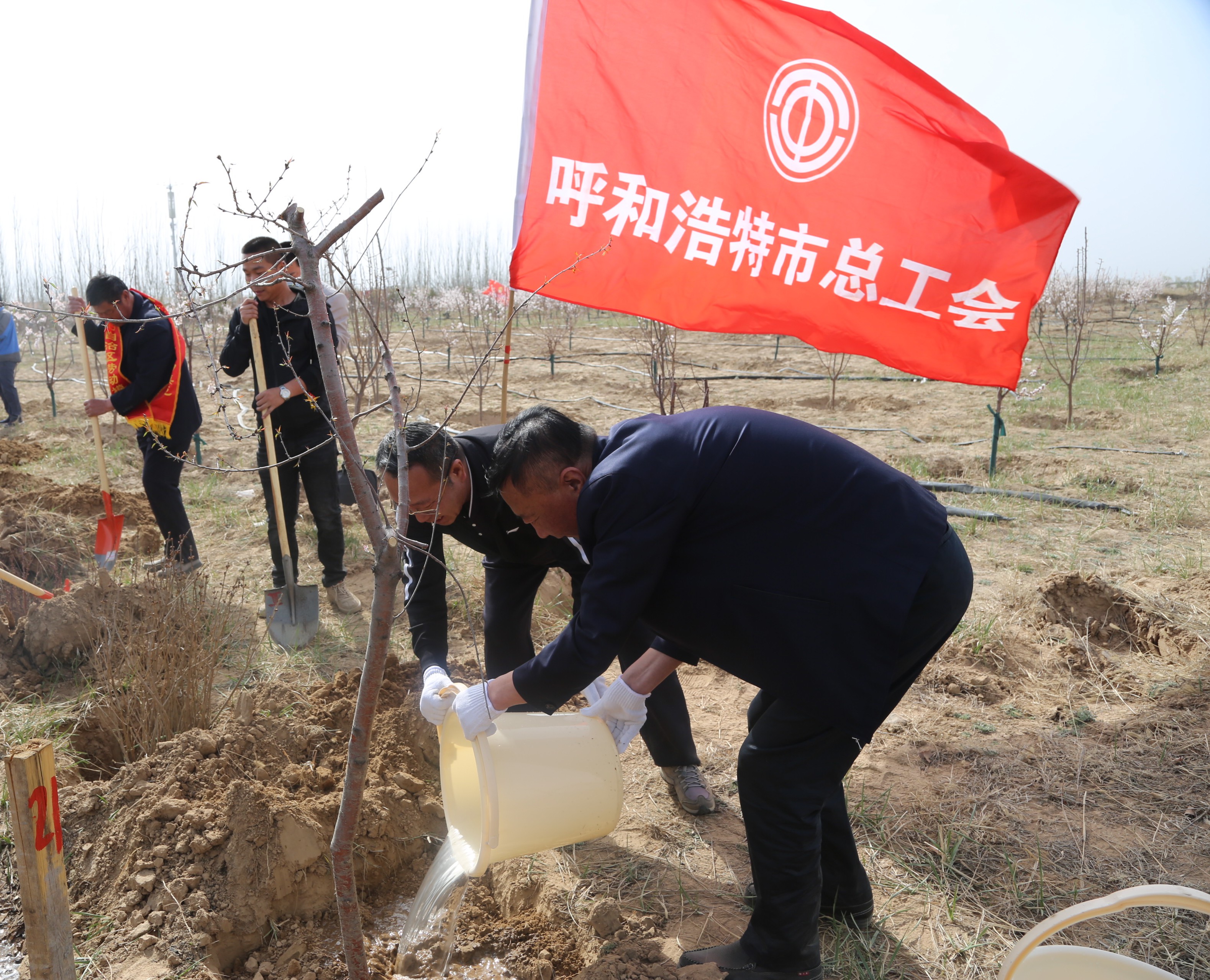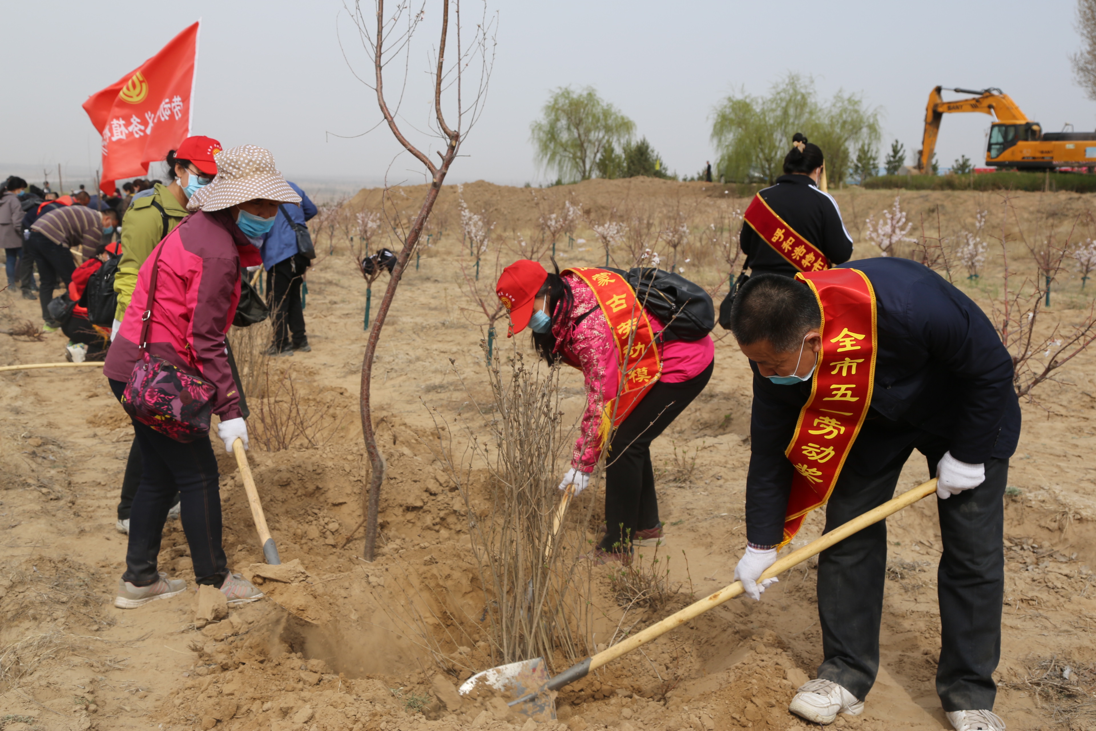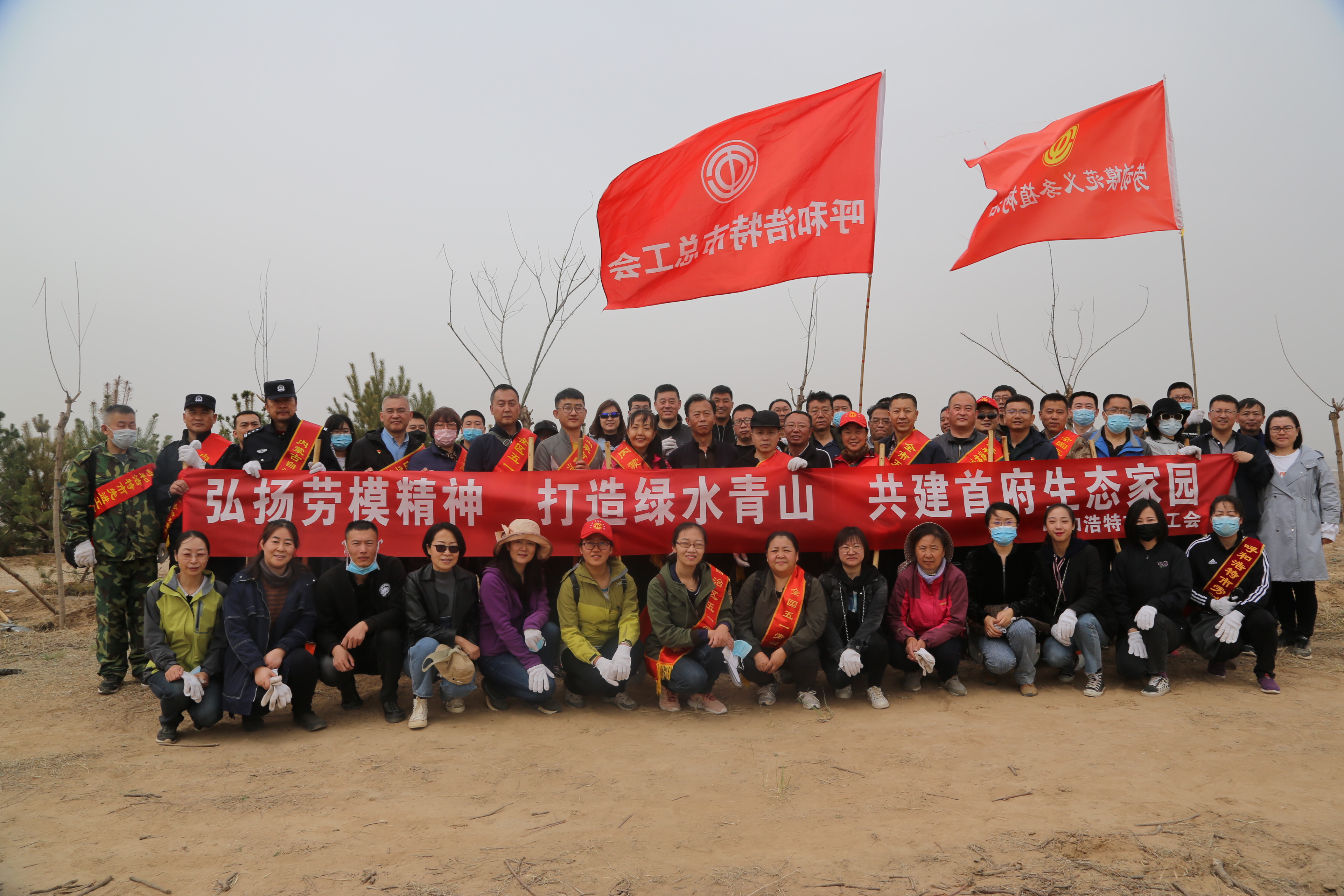 4月15日,呼和浩特市总工会组织劳模及机关工作人员赴托县沿黄湿地劳动公园开展了义务植树活动。
