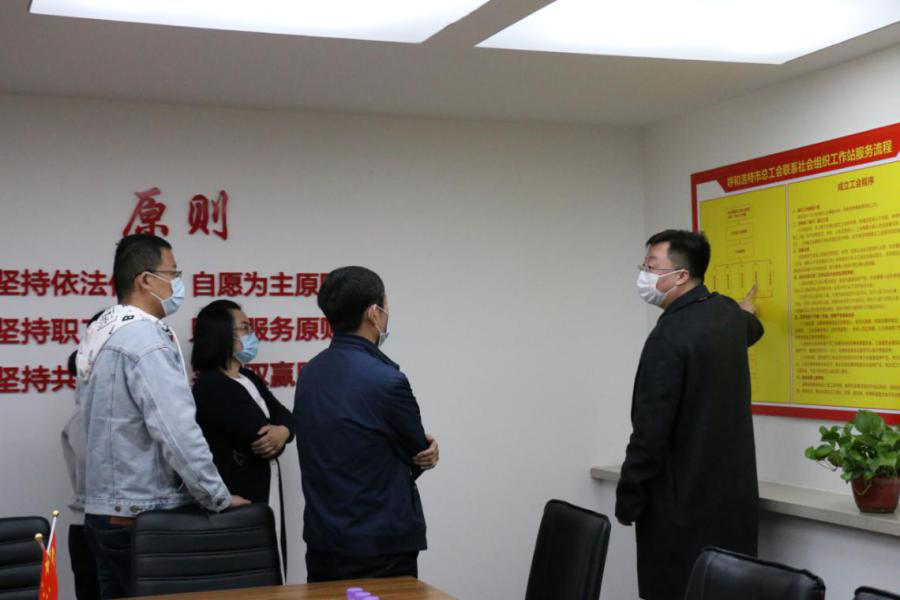 托克托县总工会一行详细了解了呼和浩特市总工会联系社会组织工作站在拓展职工服务渠道、丰富职工文化生活等方面所发挥的作用和采取的新做法。对呼和浩特市总工会联系社会组织工作站2020年疫情期间联系社会组织助力一线疫情防控工作取得的成果进行了逐一深入了解。参观结束后,托县总工会一行对呼和浩特市总工会联系社会组织工作站开展工会联系社会组织工作及取得的成效给予了高度评价。