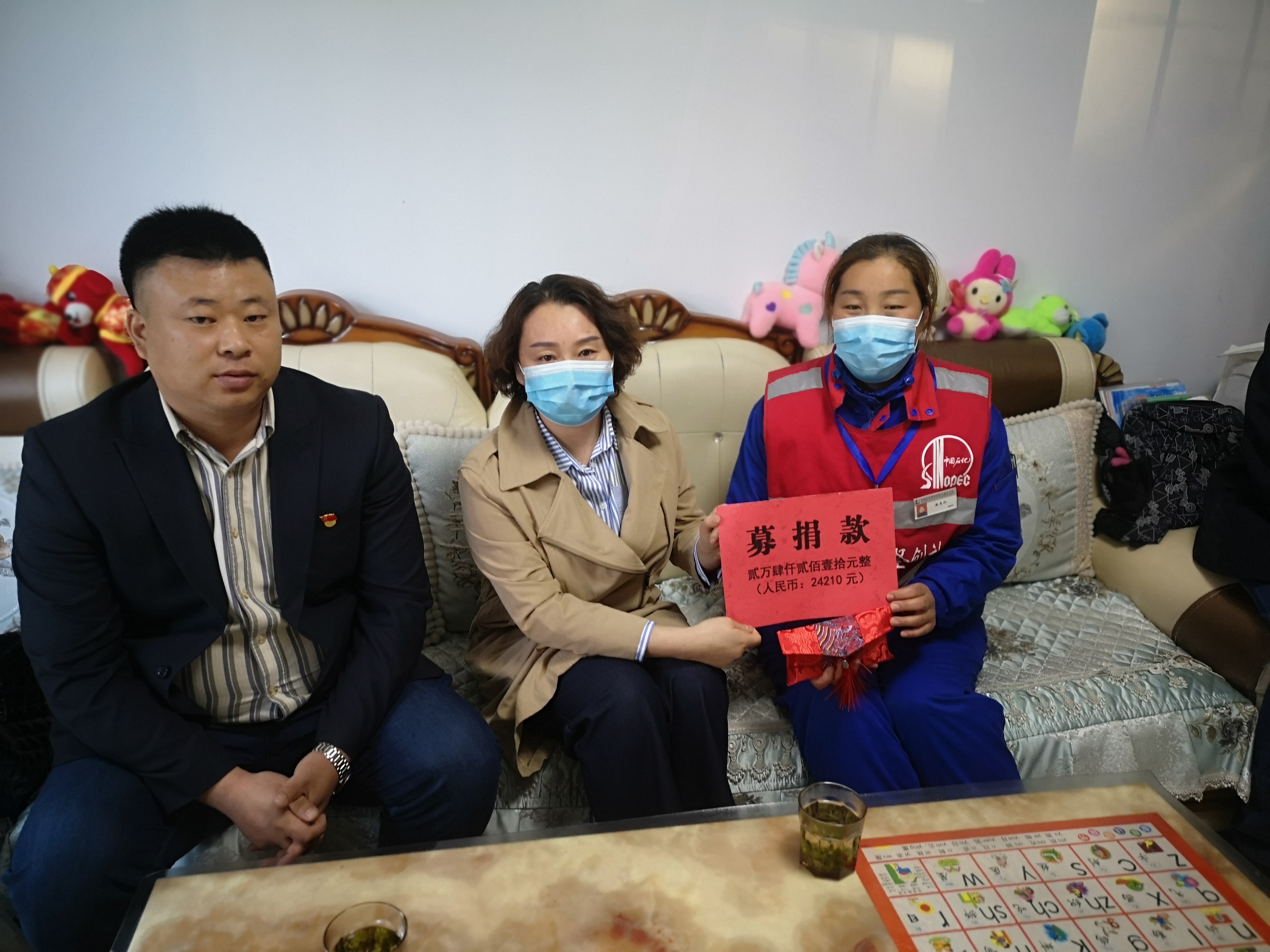 近日,呼和浩特石油分公司工会代表公司党委将公司上下全体同事的爱心善款2万多元,送到公司新华加油站员工潘美玲的手中,鼓励她勇敢前行,为美好生活加油!