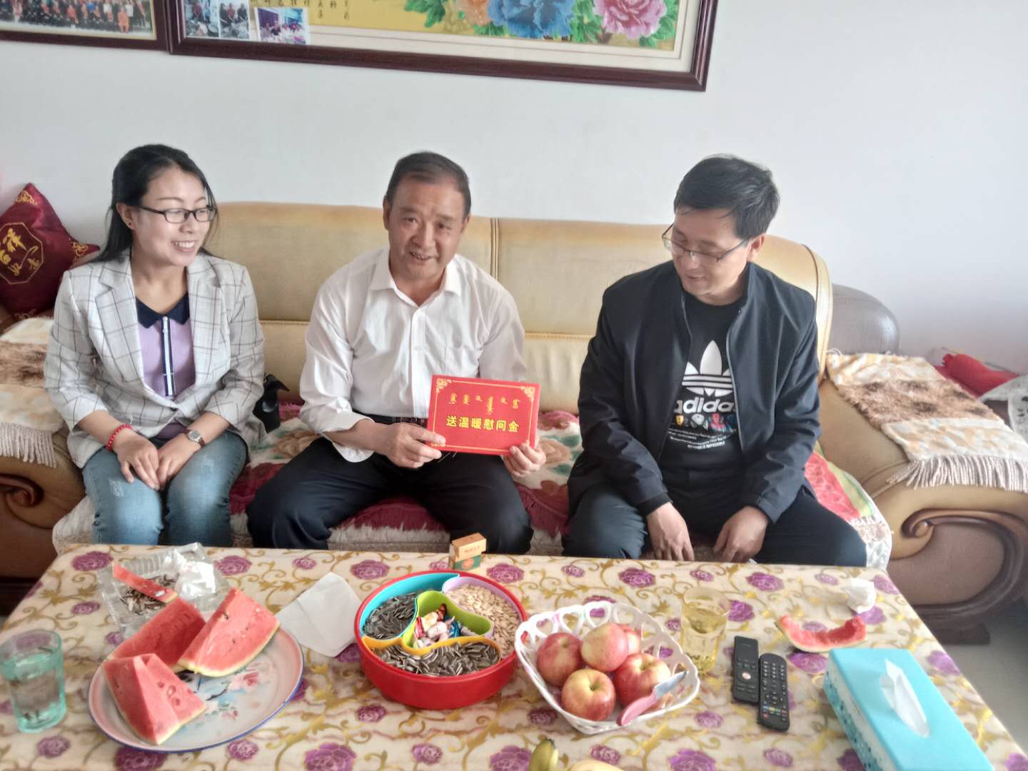 5月1日下午,武川县总工会主席张显业一行走访慰问全国劳模魏福龙、自治区劳模韩称星、邢林梅,向他们致以诚挚的问候和节日的祝福,并送上慰问金。
