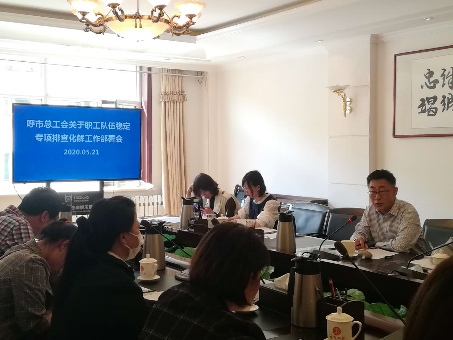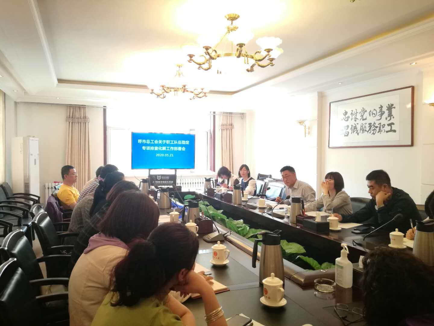5月21日上午,呼和浩特市总工会召开了保障职工队伍稳定工作部署会。市总工会法律工作部部长任剑平主持会议,各旗县区总工会、开发区(工业园区)工会,各产业工会,机关相关部门20余名领导和相关人员参加了会议。