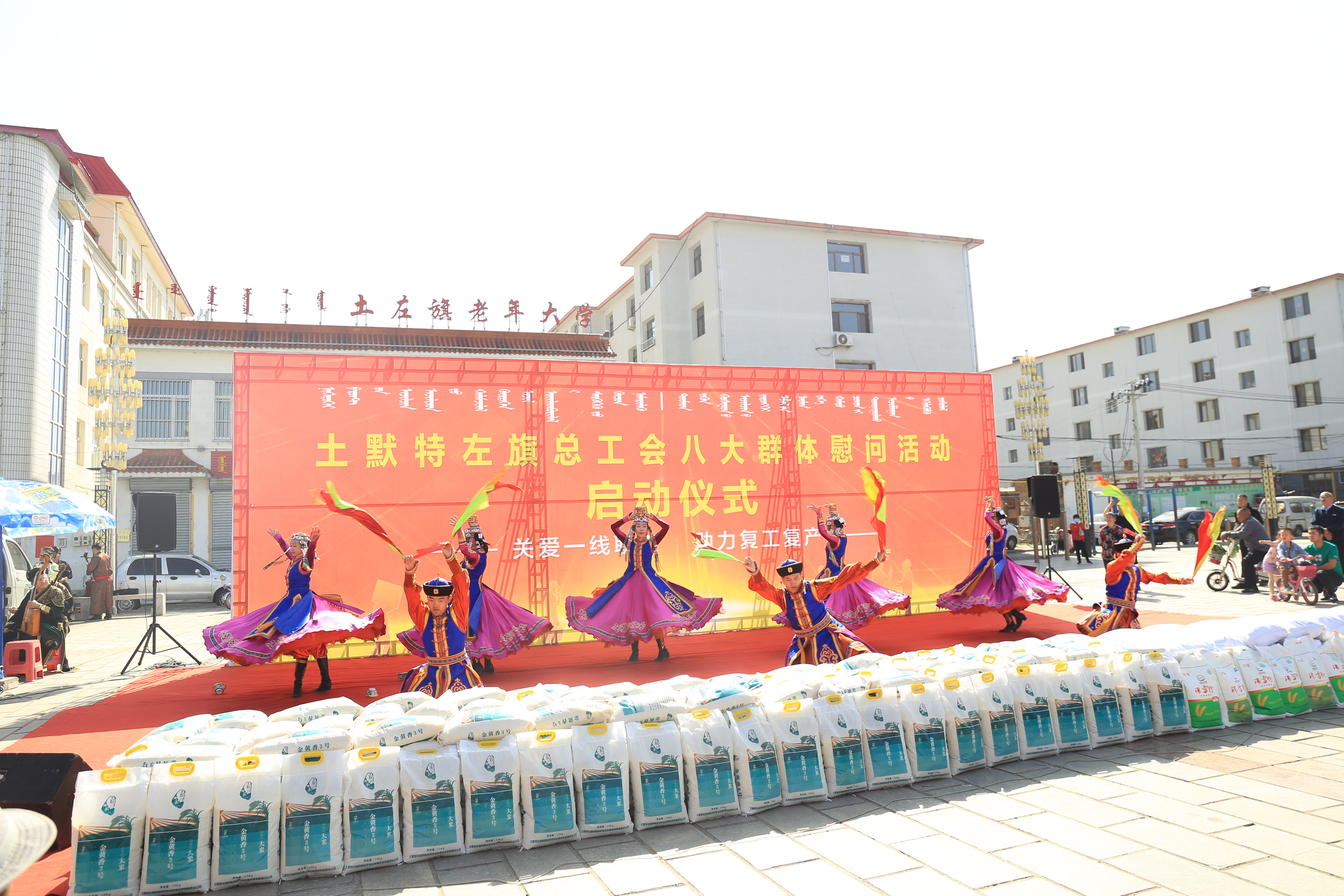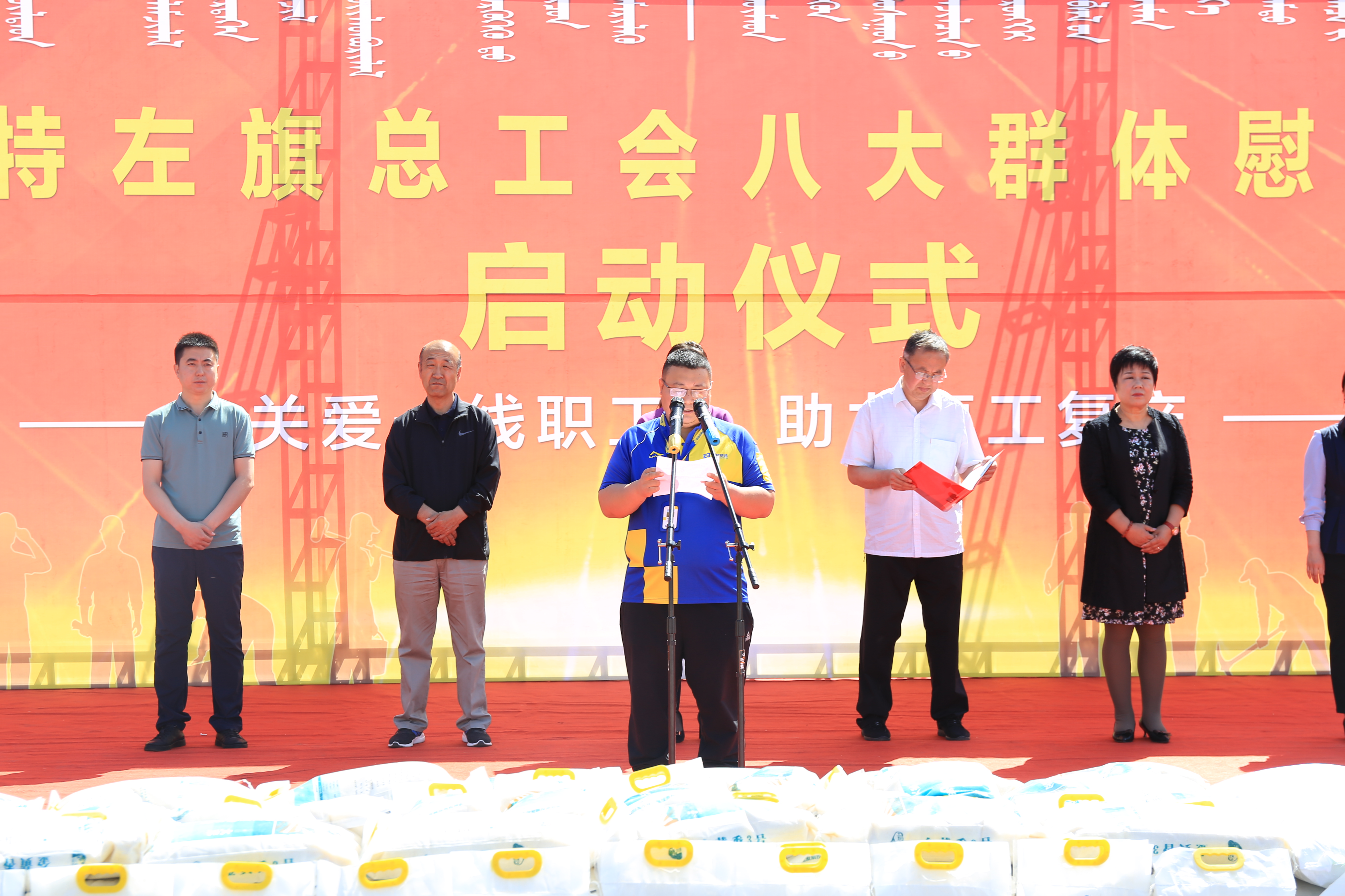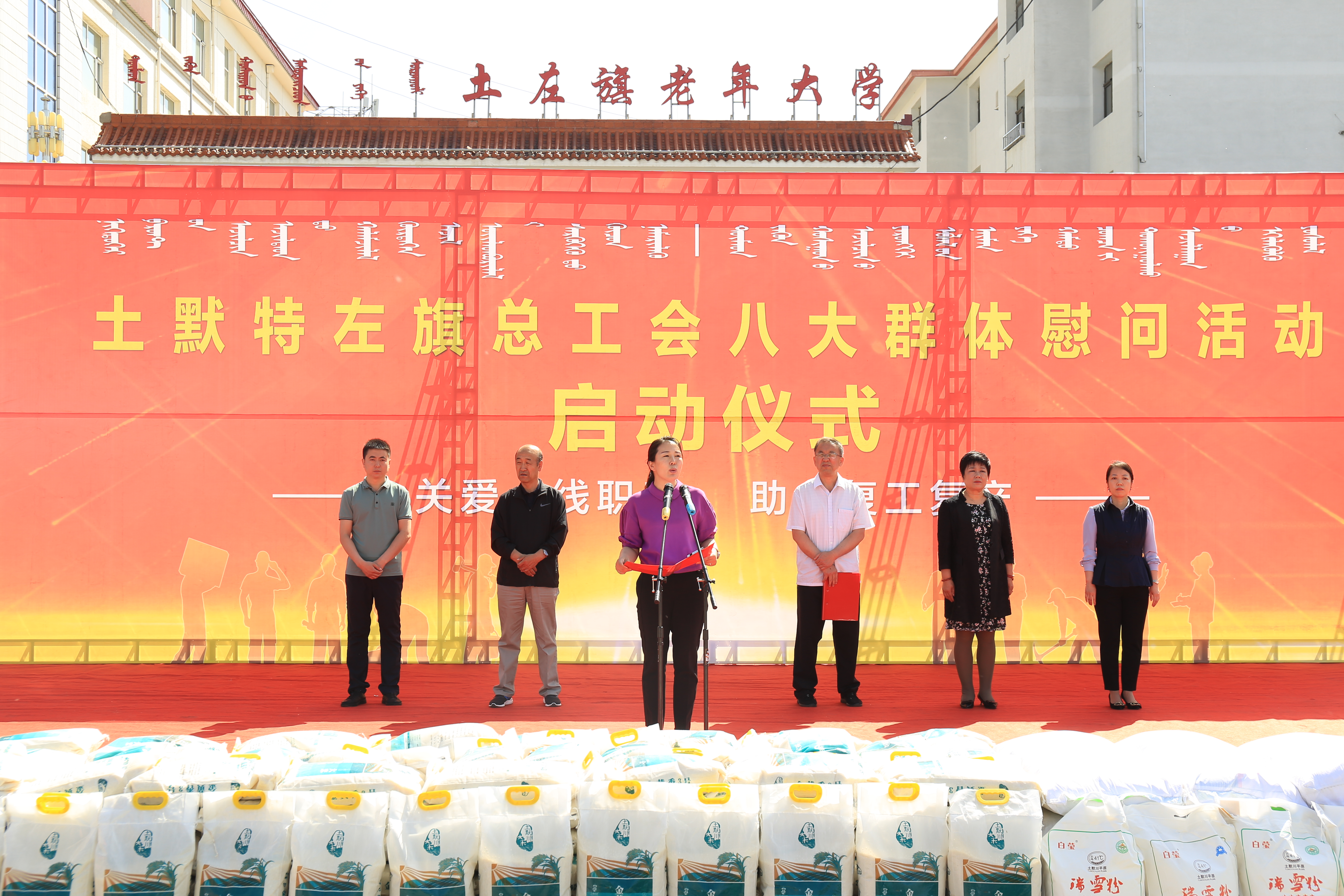 5月28日,土左旗总工会在原政府广场隆重举行“关爱一线职工·助力复工复产”“八大群体”慰问活动启动仪式。旗政协副主席、总工会主席云钰琴,旗总工会领导班子成员、全体干部,镇内各基层工会主席,“八大群体”行业职工代表们共计200余人出席启动仪式。