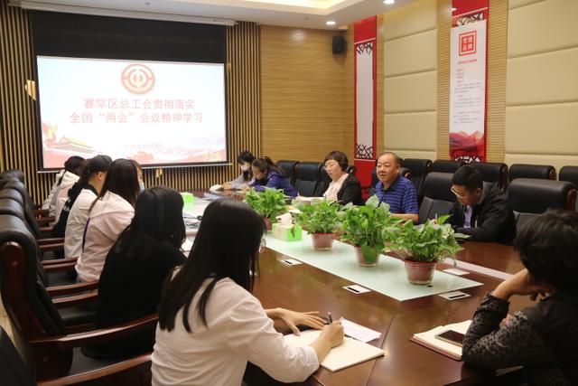 会议强调,赛罕区总工会广大党员干部职工要认真学习习近平总书记参加内蒙古代表团审议时重要讲话,切实把思想和行动统一到党中央决策部署上来,赛罕区总工会要充分发挥工会组织的桥梁纽带作用。一是团结带领广大职工建功新时代,激发职工创新创业的活力,大力弘扬劳模精神和工匠精神,营造精益求精的敬业风气。二是继续深化工会改革,推进工会各项工作,精准服务职工,不断满足职工新需求回应新期待,增强职工的获得感、幸福感、安全感。三是把学习宣传贯彻全国两会精神作为当前和今后一个时期的重要政治任务,提高站位、深化认识,顺应广大职工新期待,找准围绕中心、服务大局的切入点和着力点,推动工会工作开创新局面。