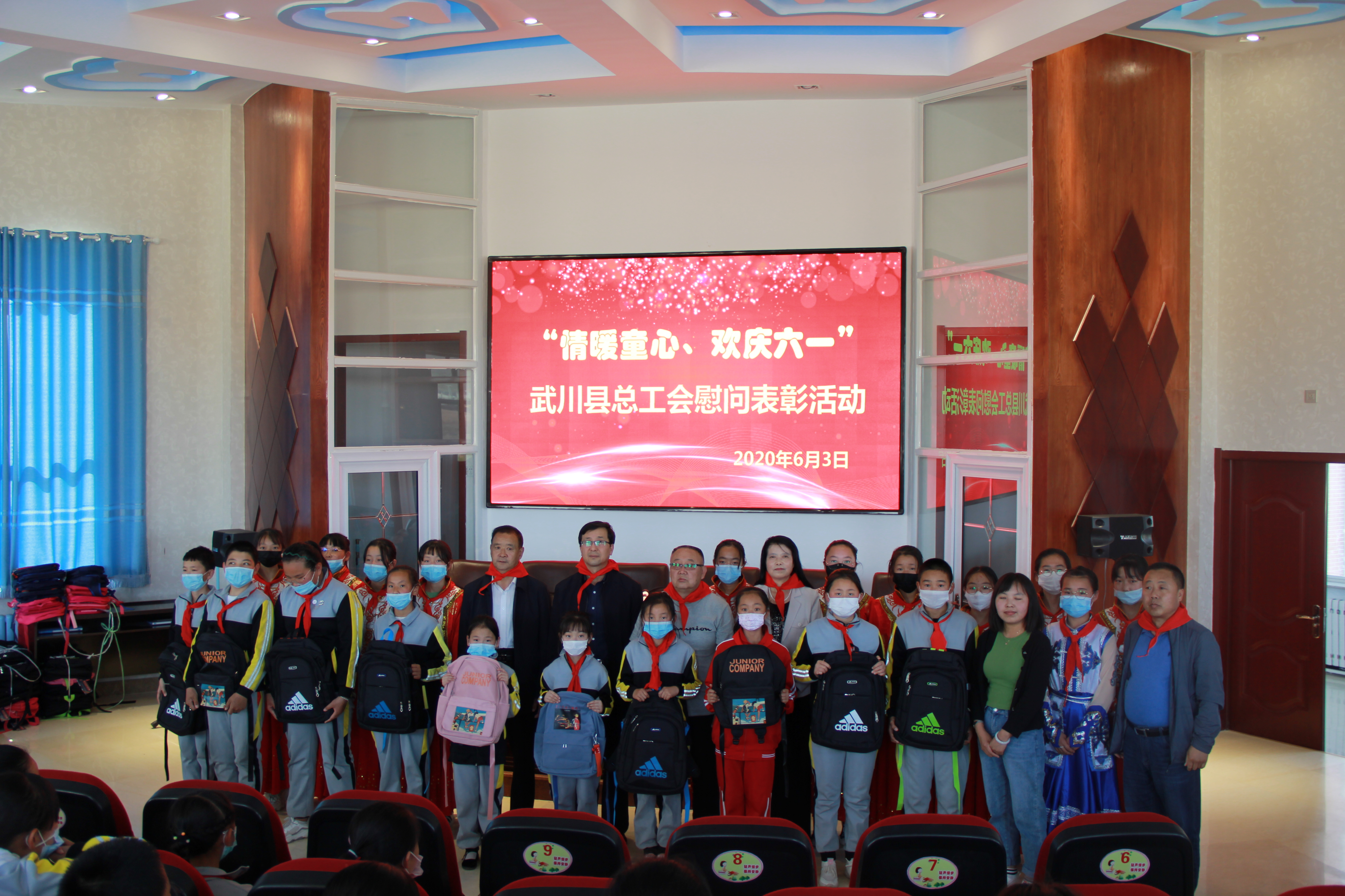 为落实国务院和自治区关于加强农村留守儿童和困境儿童关爱保护工作的要求。6月3日,在“六一”国际儿童节期间,武川县总工会主席张显业一行到武川县民族小学开展以“情暖童心、欢庆六一”为主题的慰问活动,为100名困难农民工家庭孩子送去节日慰问品。