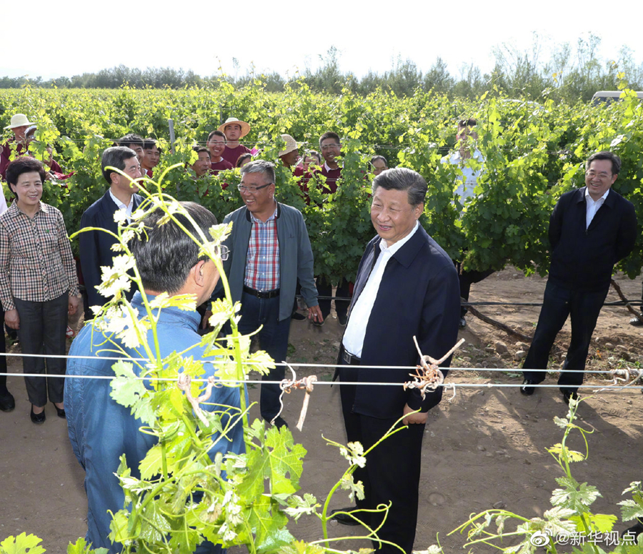 习近平总书记9日在银川考察调研。他先后来到贺兰县稻渔空间乡村生态观光园、贺兰山东麓葡萄种植园,了解当地发展特色农业产业、加强贺兰山生态保护等情况。(文字记者:张晓松、朱基钗 摄影记者:鞠鹏、谢环驰、王晔、燕雁)