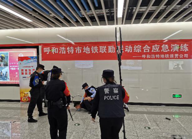 6月18日下午15时,地铁运营公司在地铁1号线市政府站与地铁公安分局白塔站派出所开展车站工作人员与驻站民警联勤联动综合应急演练。