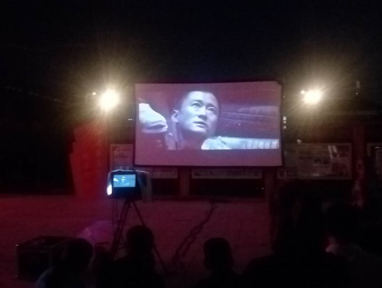 一辆流动放映车,一块幕布、一台播放机,把经典的影片《战狼2》送到了村民们的身边,将爱国主义精神融入进了他们喜闻乐见的文化活动中。一位大爷高兴地说:“我们白天在工地上干活,晚上能在这里看电影,真是太高兴了!”
