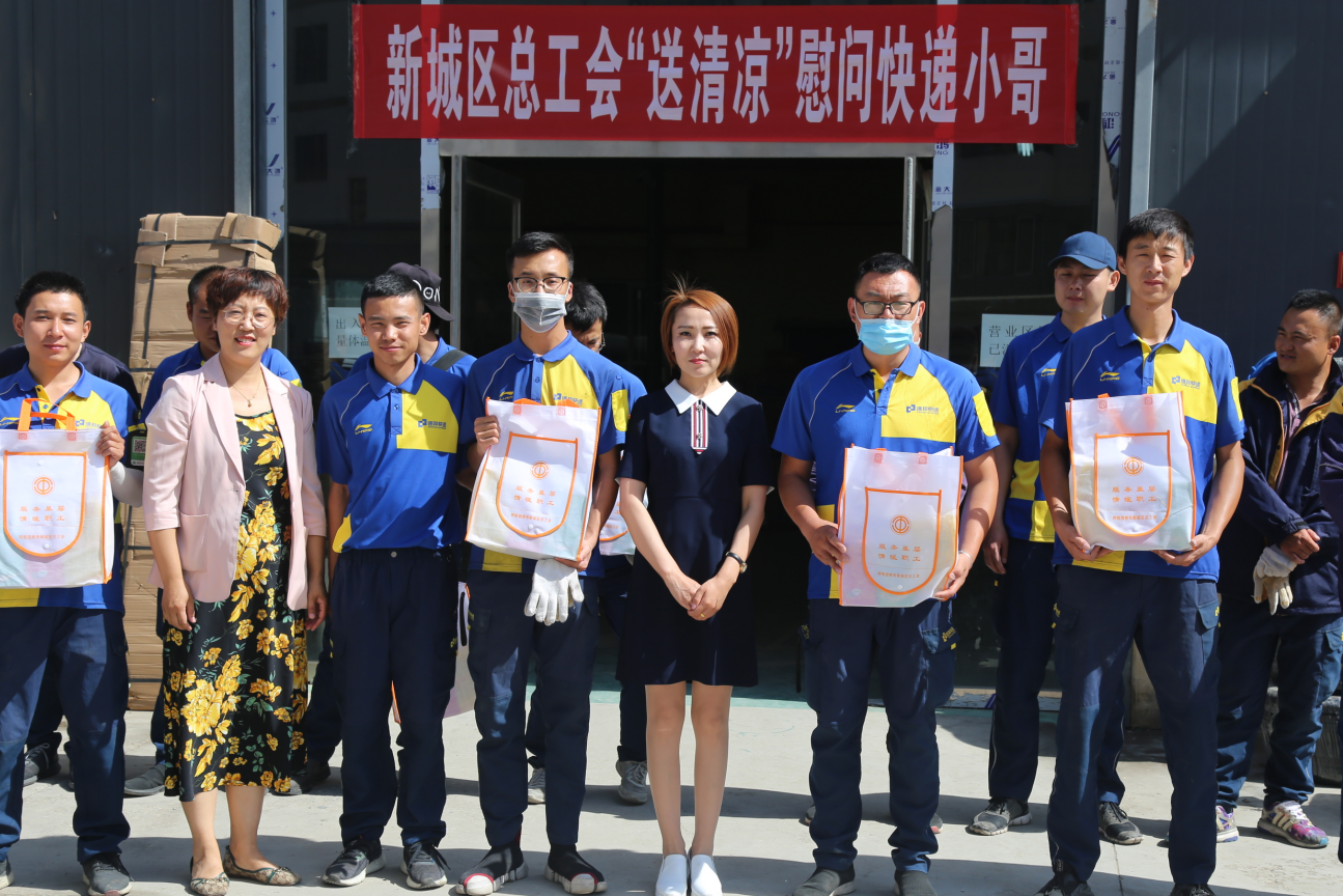 新城区总工会党组成员、副主席刘彩虹等一行来到新城区环卫局、新城区园林绿化服务中心、内蒙古铁甲护卫有限公司、德邦物流快递公司、TCL光电科技有限公司、祺泰服饰业有限公司共四家企业,看望慰问了工作在一线的保安人员、快递小哥及产业工人,为他们送去了茶叶、绿豆、冰糖、雨衣等防雨防暑用品。