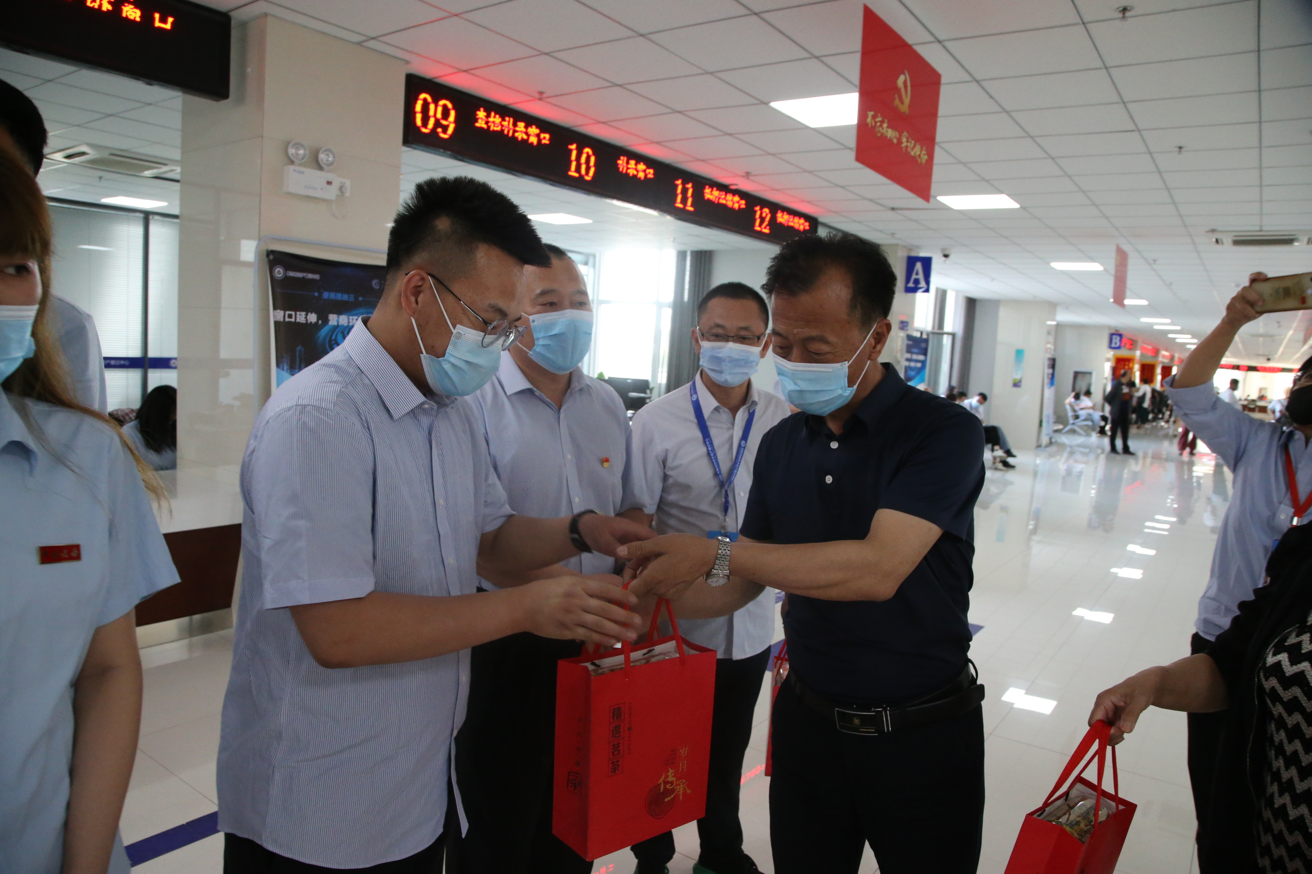 自治区总工会副主席傲木格等一行来到呼和浩特市不动产登记中心玉泉区服务大厅,看望慰问了工作在一线的各窗口服务人员,为他们送去了茶叶等防暑用品。